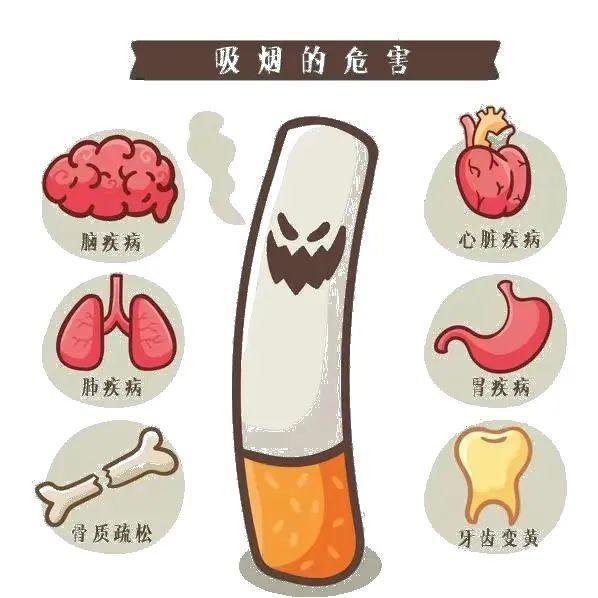 煙草危害是當今世界最嚴重的公共衛(wèi)生問題之一??茖W研究表明,吸煙嚴重危害人類健康,可以導致肺癌、慢性呼吸系統(tǒng)疾病、冠心病、腦卒中等多種疾病和死亡。吸煙者肺癌死亡率比不吸煙者高 10~13 倍。吸煙對健康有百弊而無一利。