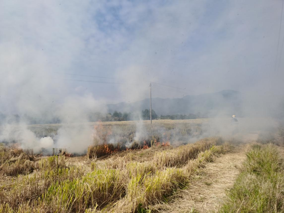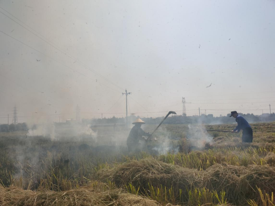 鎮(zhèn)執(zhí)法隊(duì)立即聯(lián)系鎮(zhèn)消防隊(duì)員一起開(kāi)展救援,在當(dāng)事人積極配合下,歷時(shí)55分鐘才將稻田中的明火撲滅。幸好發(fā)現(xiàn)處置及時(shí),此次露天焚燒秸稈未造成人身傷害和經(jīng)濟(jì)損失?,F(xiàn)場(chǎng)撲滅火源時(shí),當(dāng)事人又急又怕,加上長(zhǎng)時(shí)間滅火,體力透支,幾近暈厥。秸稈焚燒雖然能帶來(lái)草木灰,但更多的是帶來(lái)顆粒物與安全隱患,對(duì)于呼吸道較為脆弱的人群十分不友好。小編將現(xiàn)場(chǎng)的一張照片放大了看看,煙塵漫天飛揚(yáng),如果成片田野上都是這樣的露天焚燒,則整個(gè)集鎮(zhèn)區(qū)都將處在一片“陰霾”之中,如不慎點(diǎn)燃易燃材料或物質(zhì),后果將更加嚴(yán)重!目前,石璜鎮(zhèn)已依據(jù)《中華人民共和國(guó)大氣污染防治法》對(duì)當(dāng)事人露天焚燒秸稈行為立案查處。