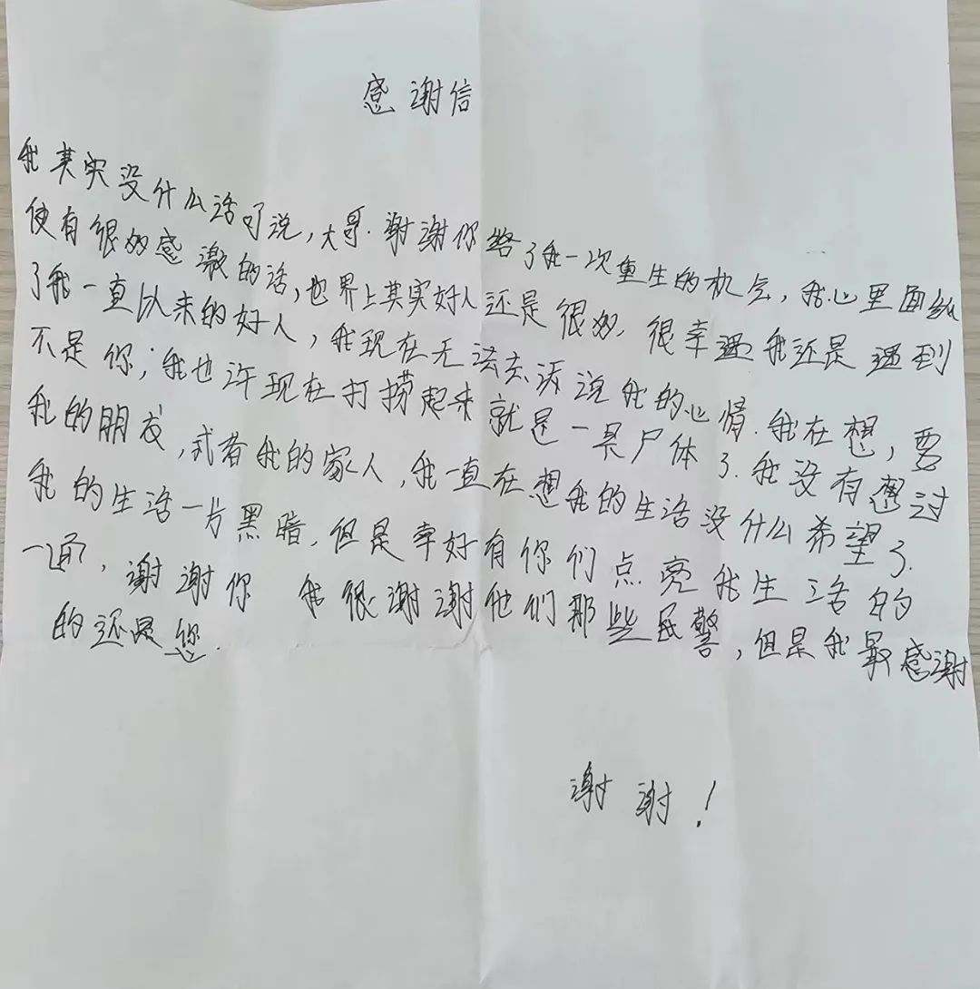 被救女子在事后也手寫了一封感謝信