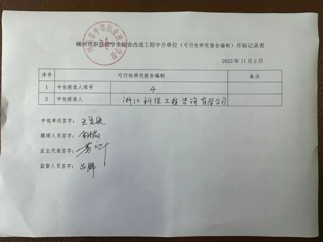 嵊州市中等職業(yè)技術(shù)學(xué)校男女學(xué)生宿舍改造工程中介服務(wù)機(jī)構(gòu)(可行性報(bào)告編制、項(xiàng)目建議書編制)擬中標(biāo)單位公示書