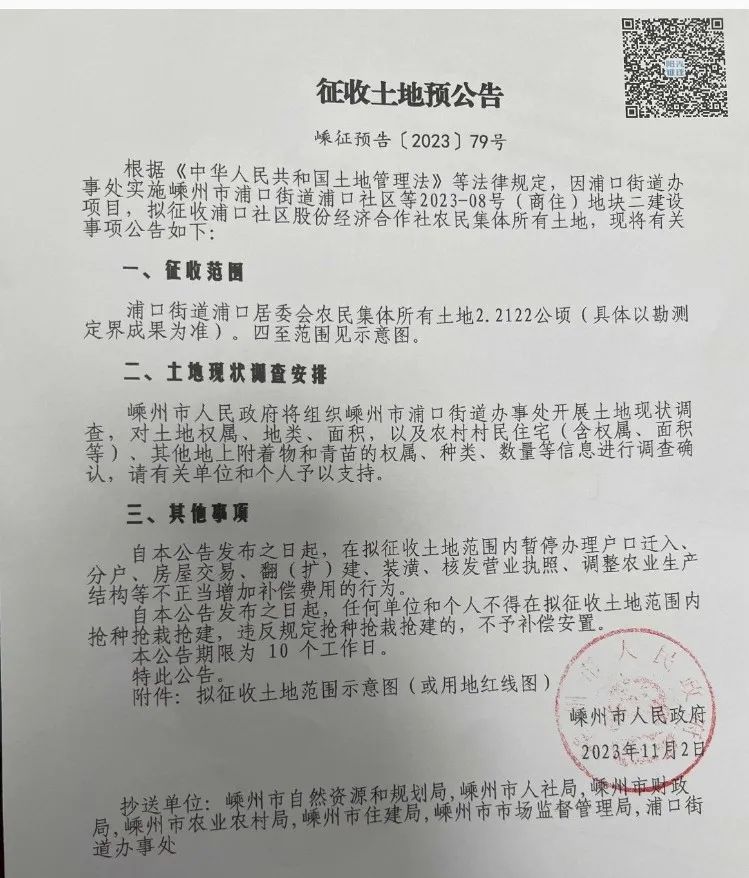 嵊征預(yù)告〔2023〕79號(hào)