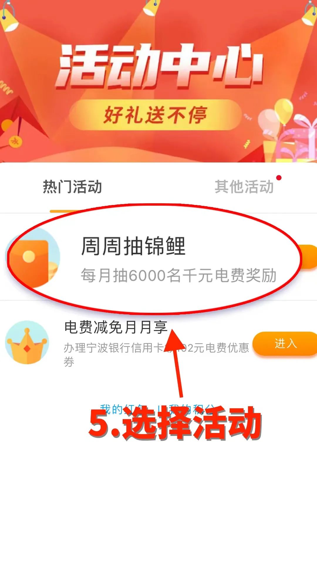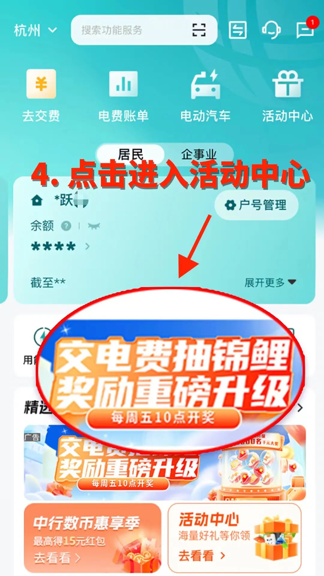③網(wǎng)上國(guó)網(wǎng)App首頁(yè)點(diǎn)擊活動(dòng)中心,選擇“周周抽錦鯉”活動(dòng)。