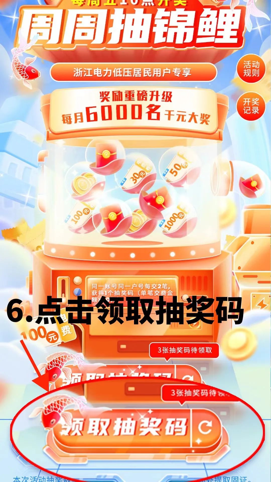 1??抽獎(jiǎng)碼需用戶完成交費(fèi)后進(jìn)入活動(dòng)頁(yè)面領(lǐng)取,活動(dòng)結(jié)束前如未及時(shí)領(lǐng)取抽獎(jiǎng)碼則視為放棄參與抽獎(jiǎng)。