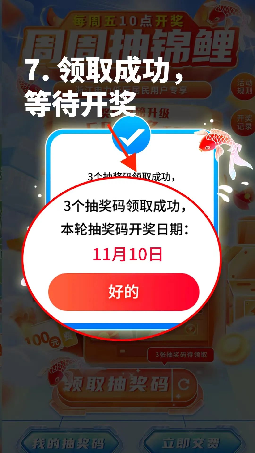 ⑤活動(dòng)將于每周五10點(diǎn)定時(shí)開(kāi)獎(jiǎng),點(diǎn)擊“我的抽獎(jiǎng)碼”查看中獎(jiǎng)情況。