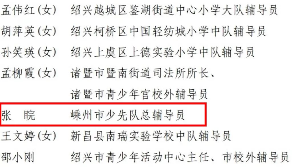 2023年度“浙江省優(yōu)秀少先隊(duì)輔導(dǎo)員”名單