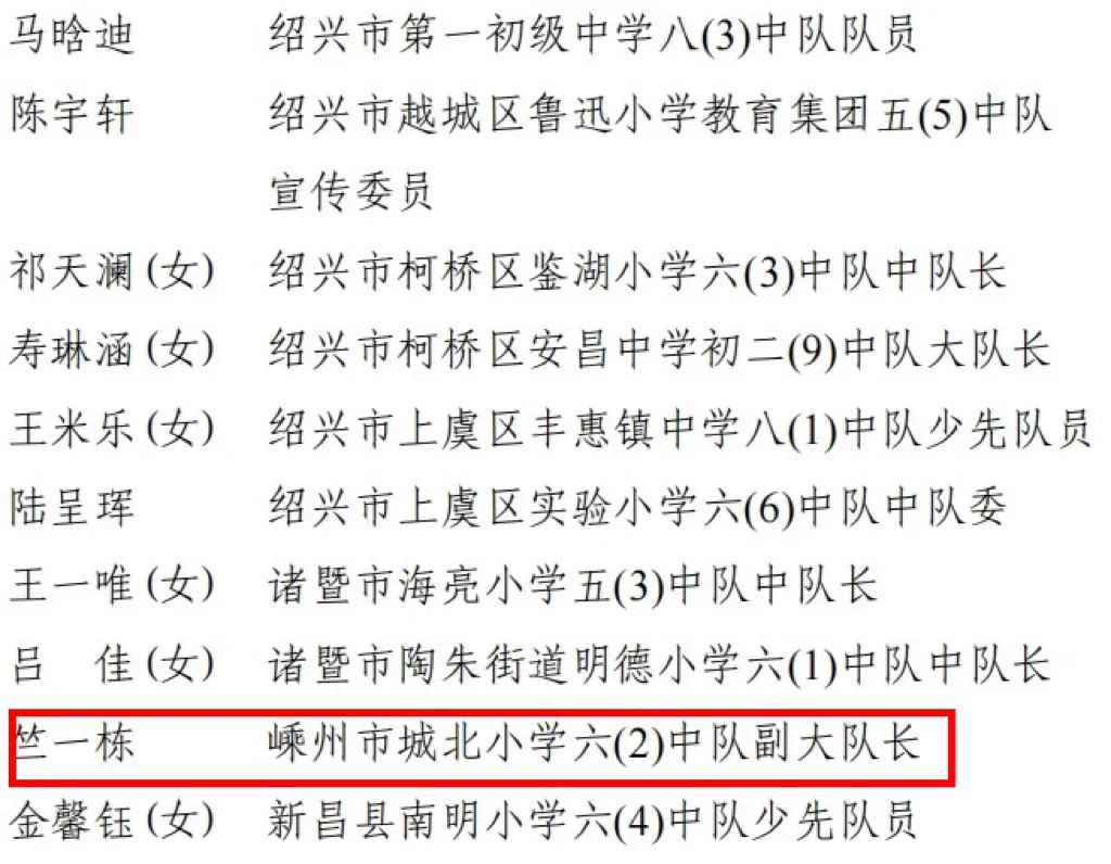 2023年度“浙江省優(yōu)秀少先隊(duì)員”名單