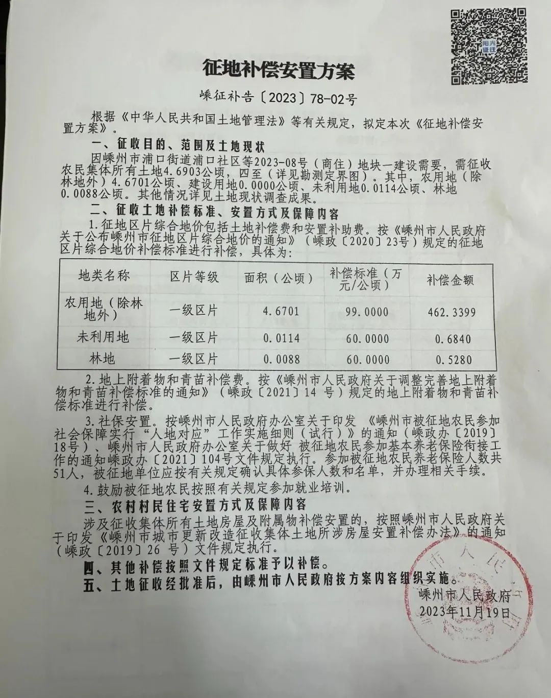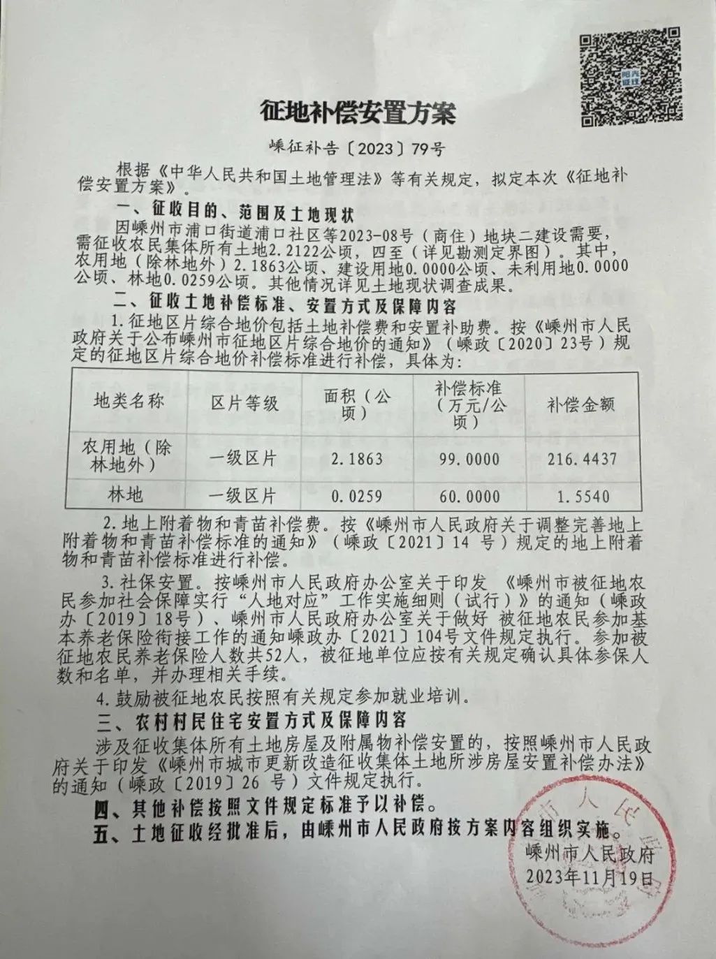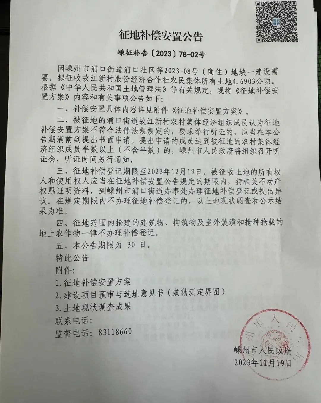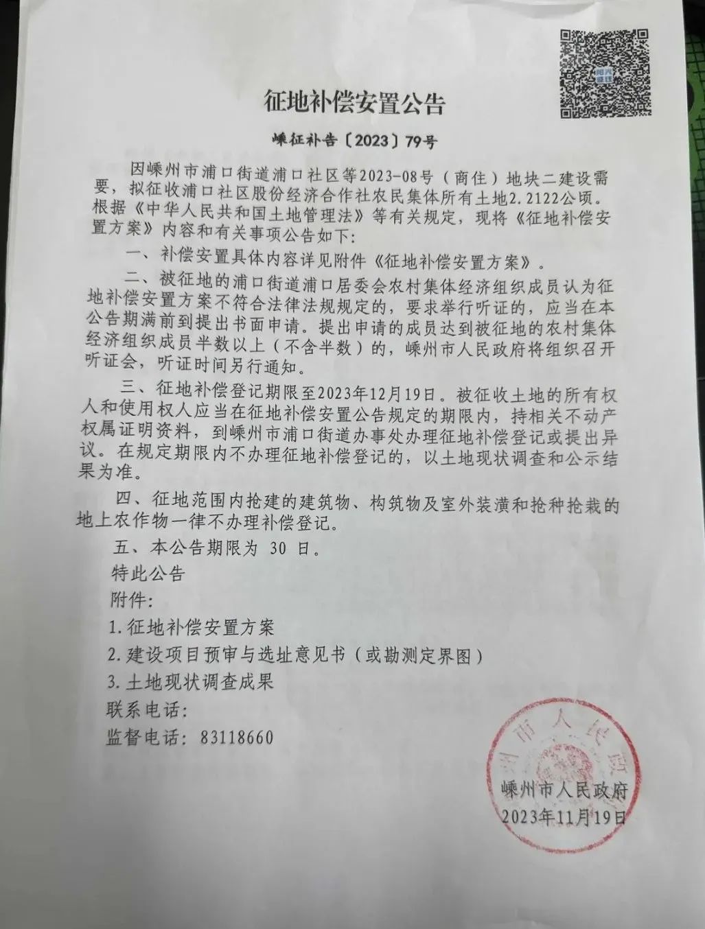 現(xiàn)將征地補償安置公告(嵊征補告〔2023〕79號)公示如下,詳見下圖: