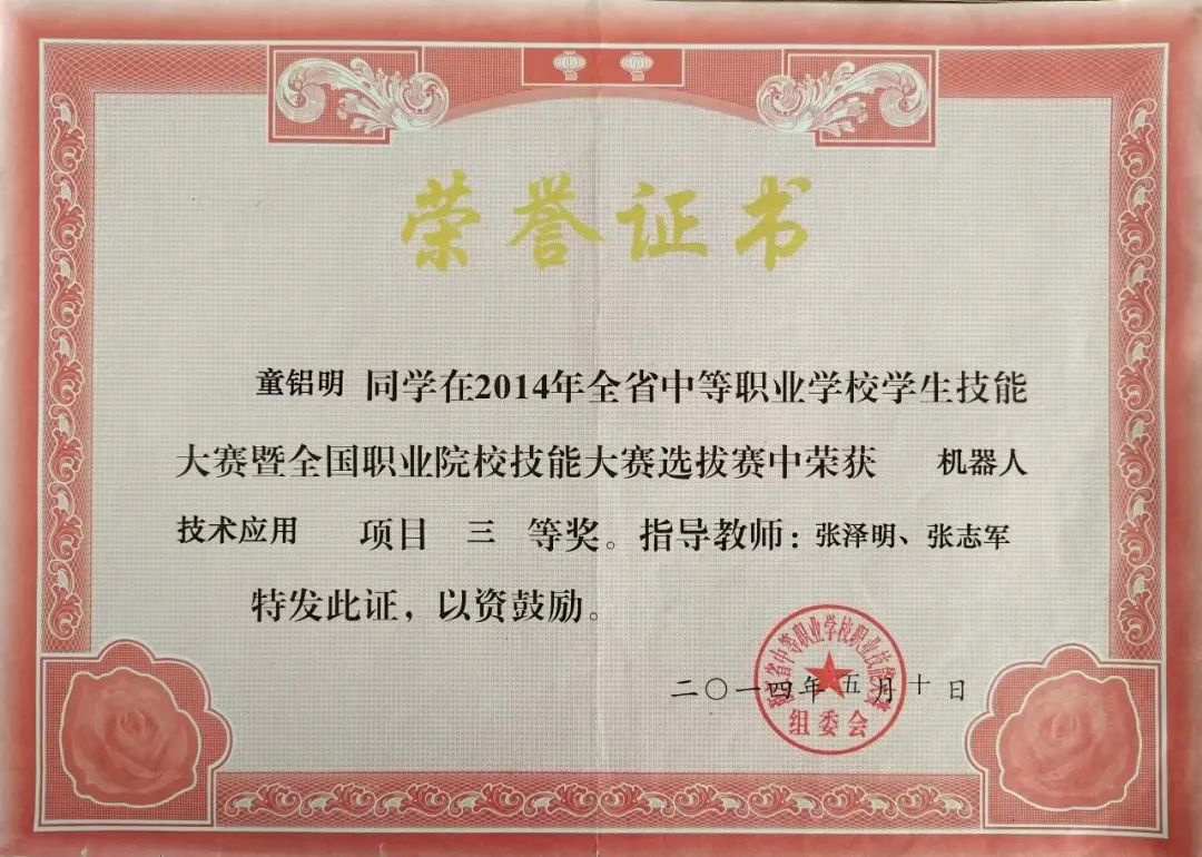 高一時,他加入學(xué)校鉗工集訓(xùn)隊,不怕苦、不怕臟、不怕累,指導(dǎo)老師常常告訴他,做好鉗工要做到“刀手合一,心系一銼”,每銼一刀,要做到心中有數(shù),才能加工出完美的工件。他從當(dāng)初的什么都不懂,經(jīng)過自己的不懈努力,最后達到技師水平。之后,他接連加入裝配鉗工、手工制茶、機器人技術(shù)應(yīng)用技能集訓(xùn),參加技能大賽,先后榮獲2013年浙江省中職學(xué)生技能大賽手工制茶(扁形綠茶)二等獎、2014年浙江省中職學(xué)生技能大賽機器人技術(shù)應(yīng)用三等獎等榮譽。職校三年的訓(xùn)練和積淀,為他之后的發(fā)展奠定了堅實的基礎(chǔ)。