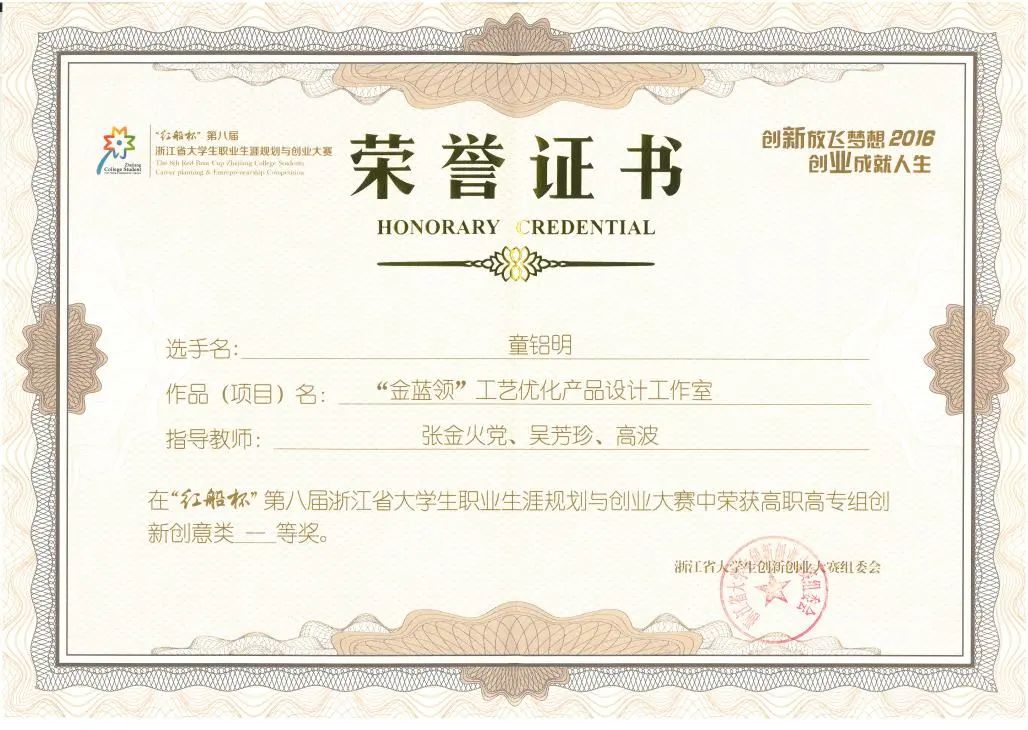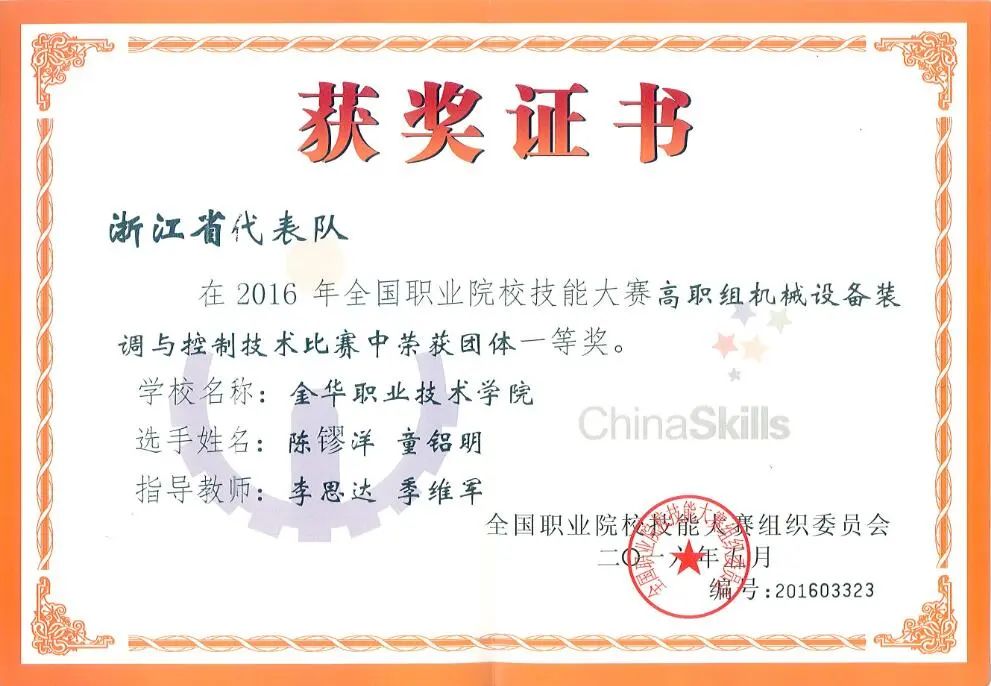 2014年9月,他以優(yōu)異的成績考入了金華職業(yè)技術(shù)學(xué)院數(shù)控技術(shù)專業(yè),大學(xué)期間,他擔(dān)任“金藍領(lǐng)協(xié)會”會長、數(shù)控142班班長等職務(wù)。同時,他積極加入集訓(xùn)隊,參加各類比賽,結(jié)出了以下累累碩果:榮獲2016年全國職業(yè)院校技能大賽“高職組機械設(shè)備裝調(diào)與控制技術(shù)比賽”一等獎、主持的《干茶攤片粉碎機》榮獲第十屆全國高職高專“發(fā)明杯”大學(xué)生創(chuàng)新創(chuàng)業(yè)大賽(發(fā)明制作類)一等獎、選送的“金藍領(lǐng)”工藝優(yōu)化產(chǎn)品設(shè)計工作室榮獲“紅船杯”第八屆浙江省大學(xué)生職業(yè)生涯規(guī)劃和創(chuàng)新創(chuàng)業(yè)大賽高職高專組創(chuàng)新創(chuàng)意類一等獎,同時榮獲“2016年度浙江省最佳創(chuàng)新創(chuàng)意之星”榮譽稱號,參與的浙江省嵊州市金誠農(nóng)業(yè)機械設(shè)備有限公司項目團隊在首屆成泰銀行浙中大中專學(xué)生“挑戰(zhàn)杯”創(chuàng)業(yè)創(chuàng)新大賽中榮獲二等獎,選送的“神奇的機器”作品榮獲浙江省三等獎。