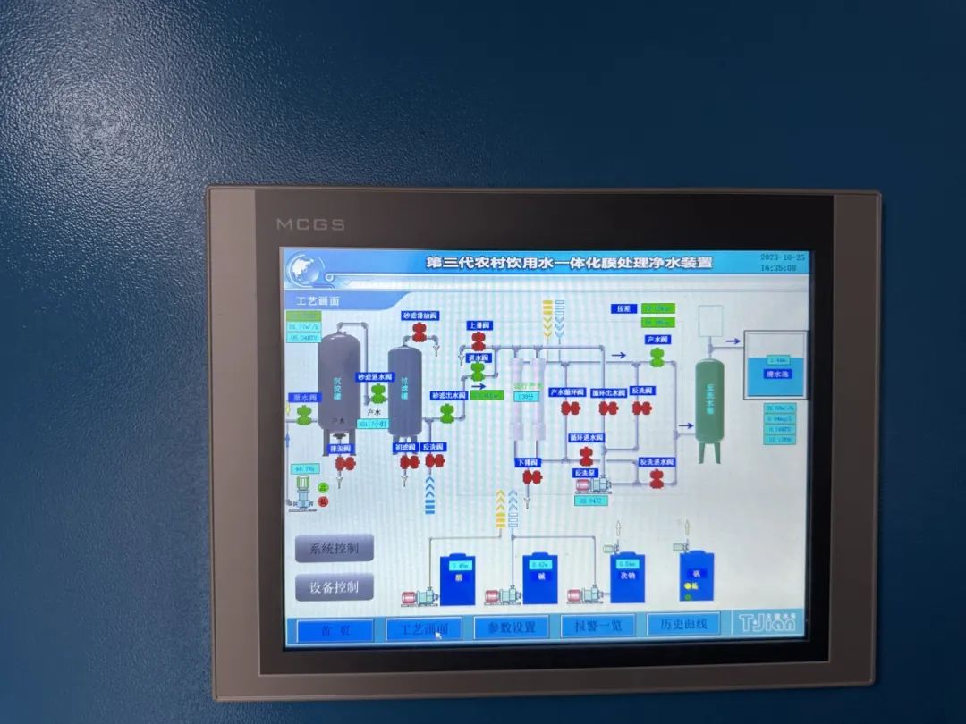 按照國(guó)家和行業(yè)有關(guān)規(guī)范要求,合理確定水源、水廠廠址、管網(wǎng)布置、取水方式、供水規(guī)模和凈水工藝等,全面推進(jìn)城鄉(xiāng)供水一體化項(xiàng)目標(biāo)準(zhǔn)化建設(shè)。針對(duì)全市單村供水站點(diǎn)多,分布散的情況,充分發(fā)揮規(guī)范化水廠(站)示范帶動(dòng)引領(lǐng)作用,高標(biāo)準(zhǔn)高規(guī)格改進(jìn)農(nóng)飲水提質(zhì)技術(shù)工藝,從傳統(tǒng)沉淀過(guò)濾提檔升級(jí)陶瓷膜水處理工藝,從人工添加提能升級(jí)自動(dòng)化調(diào)控投加藥,實(shí)現(xiàn)進(jìn)出水濁度前后大幅提升,以雅璜單村水站為例,出水濁度從1.2NTU提升為0.07NTU,達(dá)到規(guī)模水廠標(biāo)準(zhǔn)。