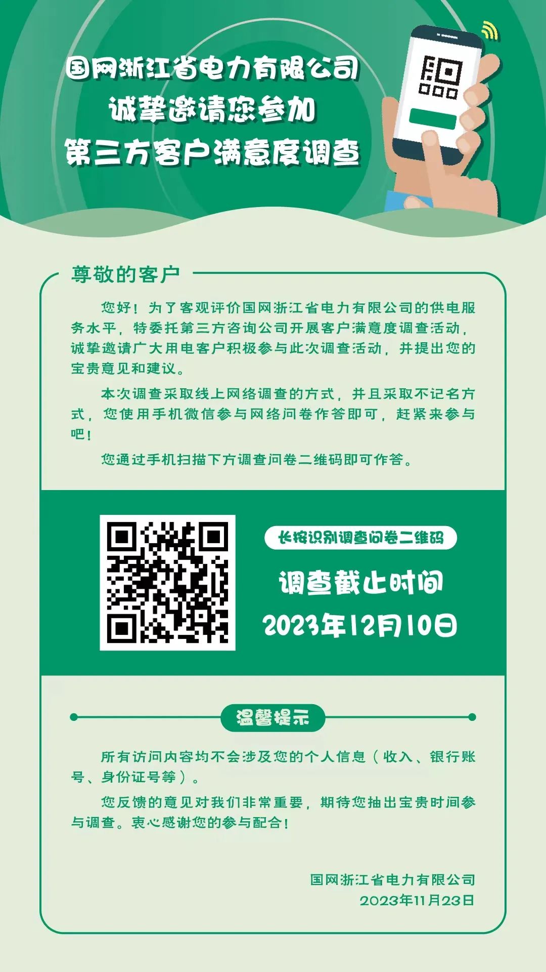 為了給您充足的時(shí)間思考,我們將問(wèn)卷調(diào)查截止日期設(shè)定在2023年12月10日。小伙伴們記得在截止日期前填寫哦!