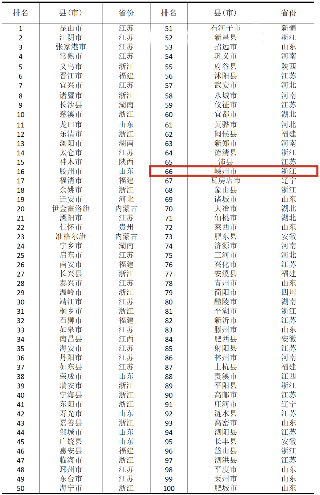 12月5日,稷夏全國縣域綜合競爭力百強縣市榜單發(fā)布,嵊州位列66位。榜單由稷夏智庫受權(quán)根據(jù)中國社會科學(xué)院財經(jīng)戰(zhàn)略研究院《中國縣域經(jīng)濟(jì)發(fā)展報告》指標(biāo)體系編制而成。