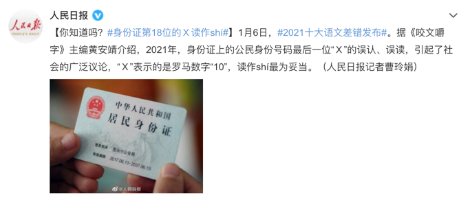 #身份證上的X讀什么#