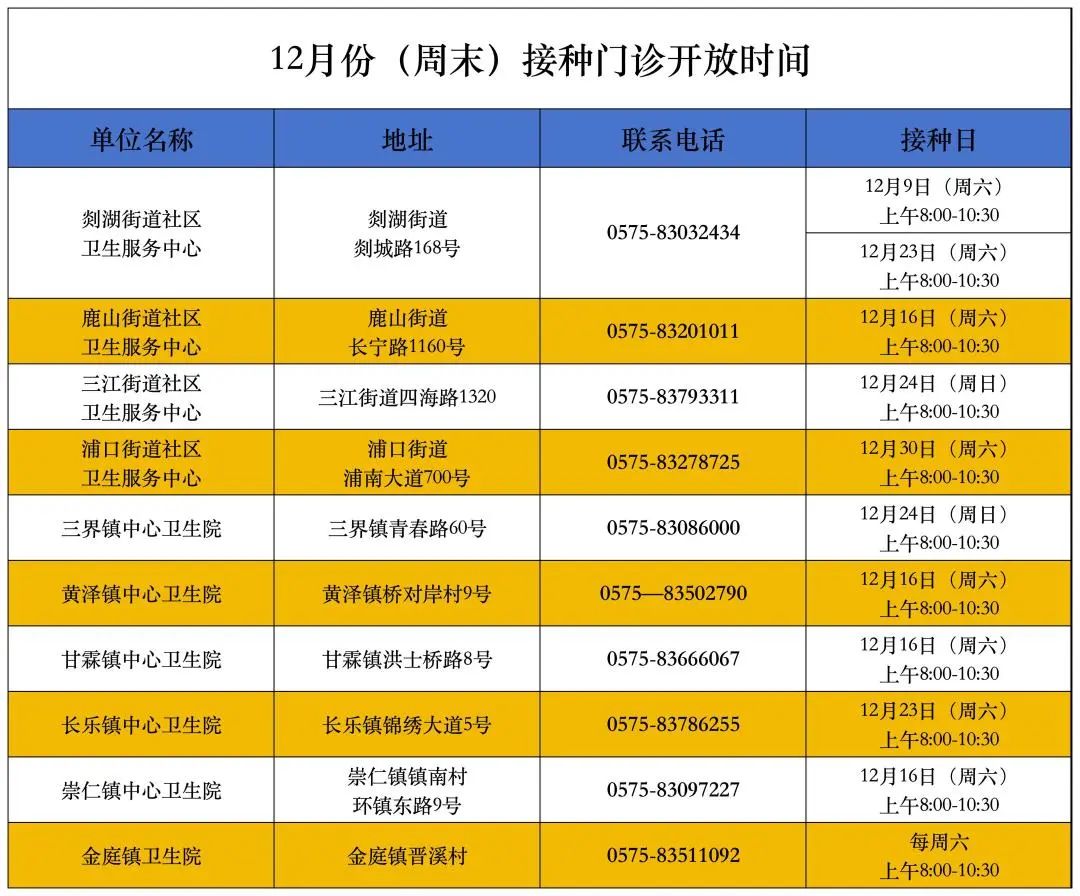 12月份(周末或節(jié)假日)流感疫苗接種專場時(shí)間