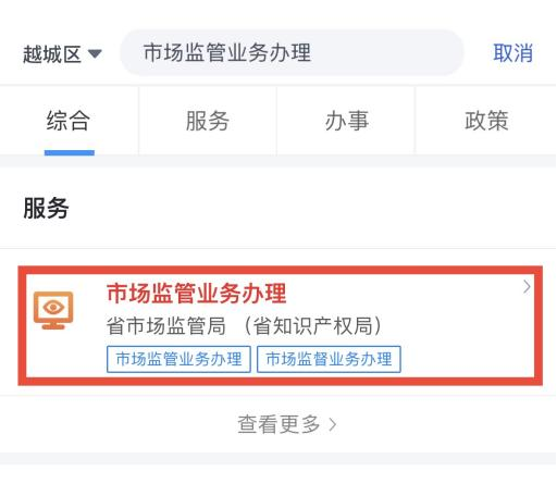 下載“浙里辦”APP并登錄,搜索“市場監(jiān)管業(yè)務(wù)辦理”,根據(jù)所需辦理業(yè)務(wù)進行選擇。