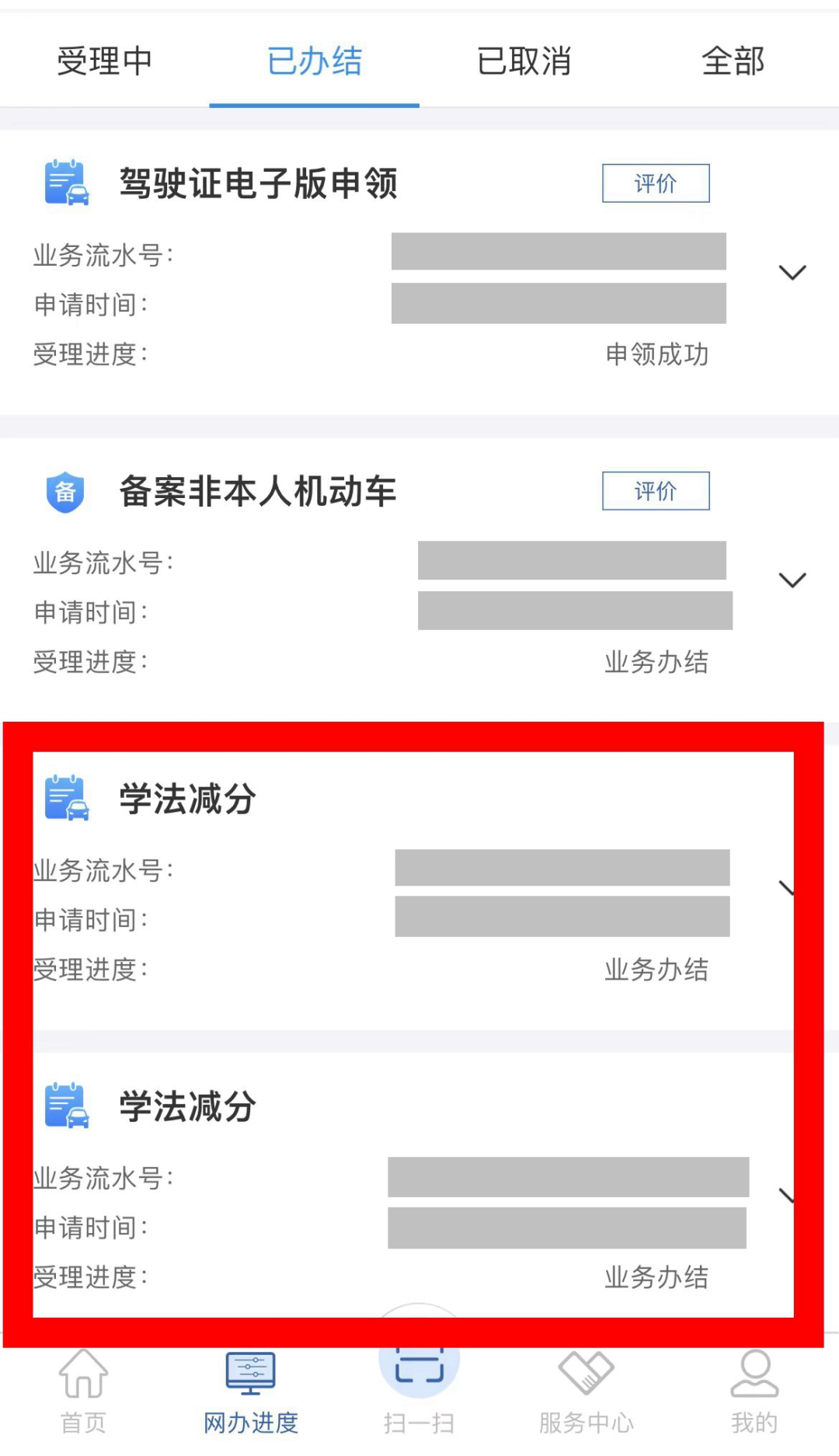 考試通過的用戶,可點擊“前往查看”按鈕,跳轉(zhuǎn)至“網(wǎng)辦進度”查看記錄。