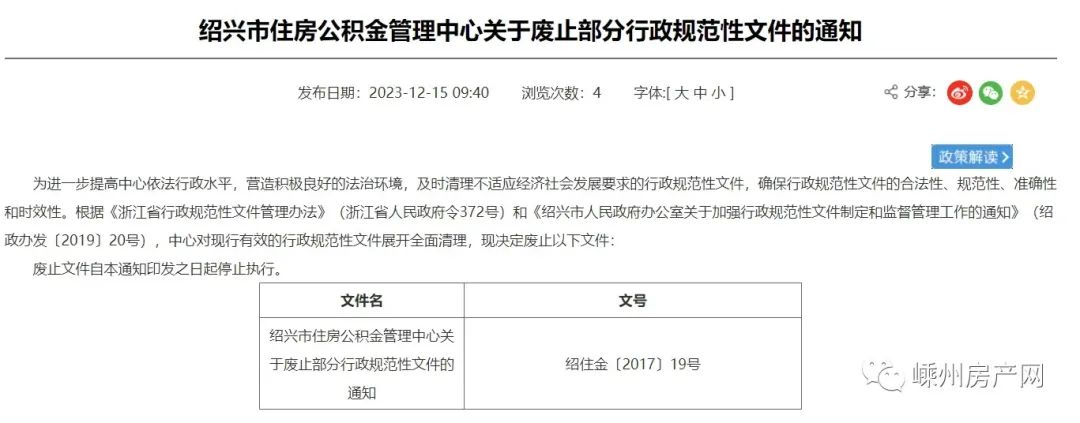 近日,紹興市人民政府網(wǎng)發(fā)布《紹興市住房公積金管理中心關(guān)于廢止部分行政規(guī)范性文件的通知》政策解讀,提到廢止紹興市住房公積金管理中心關(guān)于印發(fā)《紹興市住房公積金騙提套取行為處理暫行辦法》的通知(紹住金〔2017〕19號(hào))。