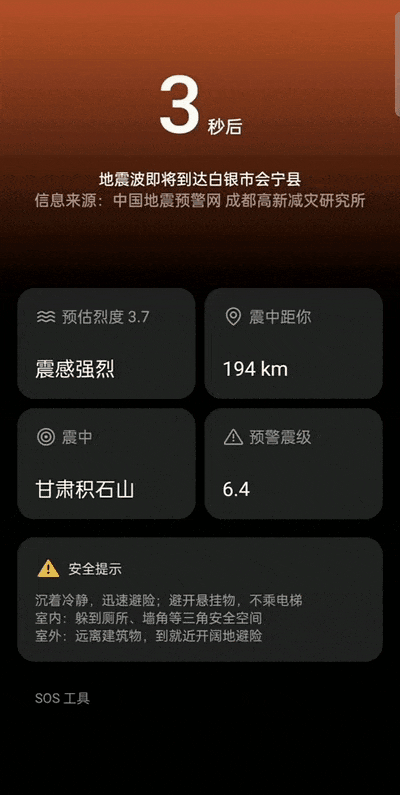 設(shè)定→安全→SOS緊急聯(lián)絡(luò)→自然災(zāi)害警報→地震警報
