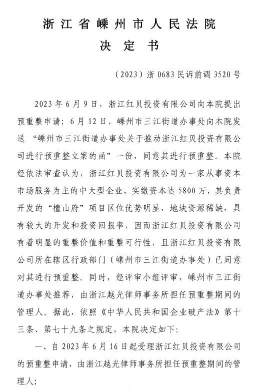 項目一、二期已銷售房產(chǎn)62套,車位91個,重整后的紅貝公司仍應將上述已經(jīng)銷售的62套房產(chǎn)及91個車位續(xù)建完工,并達到交付標準及符合辦理相關(guān)權(quán)證的要求。據(jù)摸排,已銷售的房產(chǎn)中,絕大部分購房戶要求繼續(xù)交房,少部分購房戶要求退房。