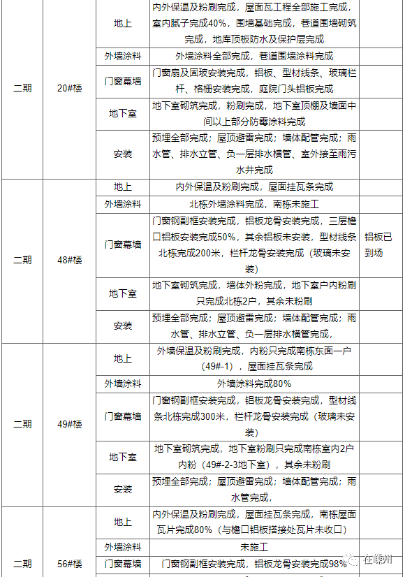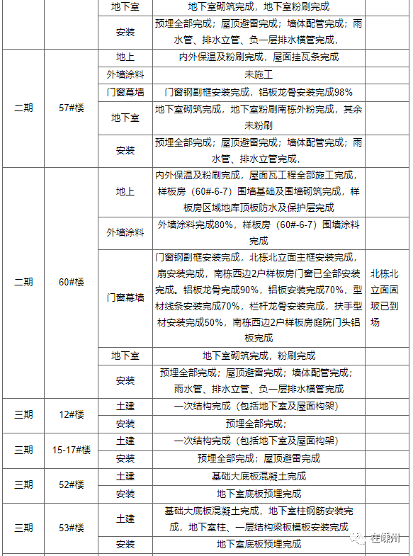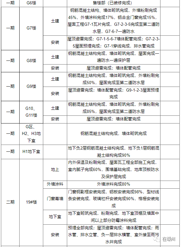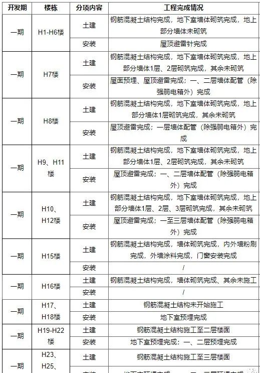 項目一、二、三期處于在建狀態(tài),四、五、六期尚未開發(fā)建設。一至三期在建工程實物完工狀況如下: