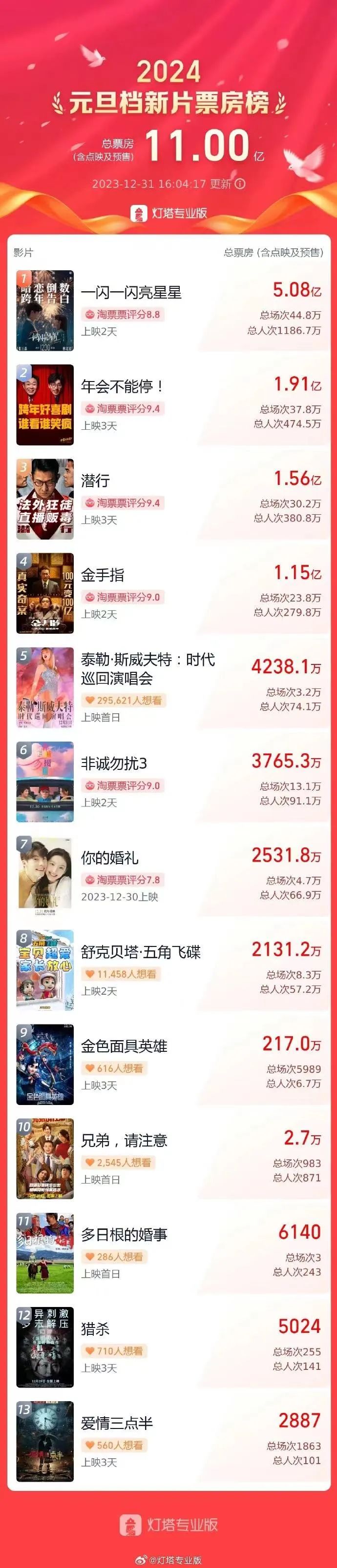 總票房(含預(yù)售)突破11億