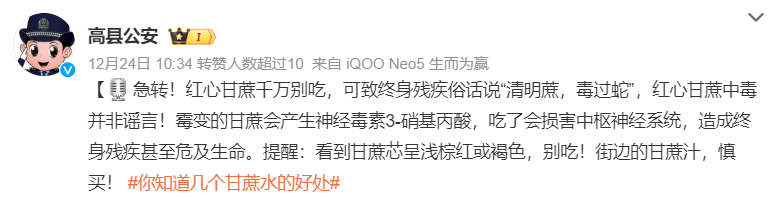 關(guān)于吃甘蔗中毒的案例屢見不鮮