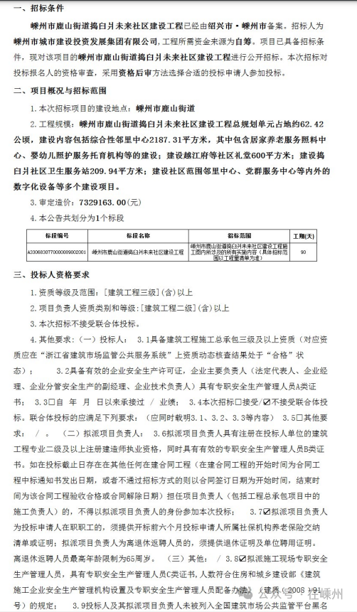 嵊州市鹿山街道搗臼爿未來社區(qū)建設(shè)工程施工招標(biāo)公告