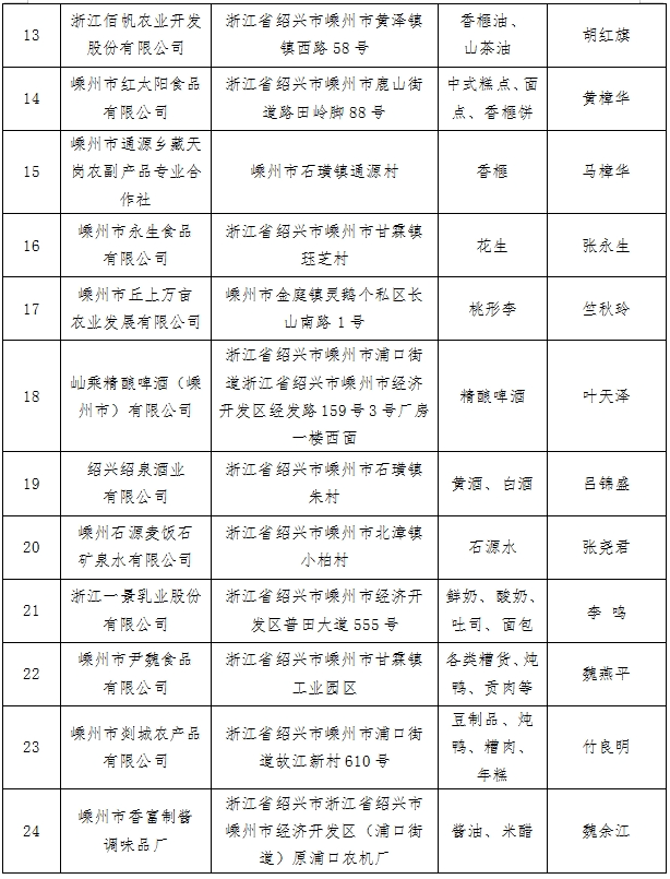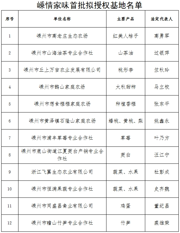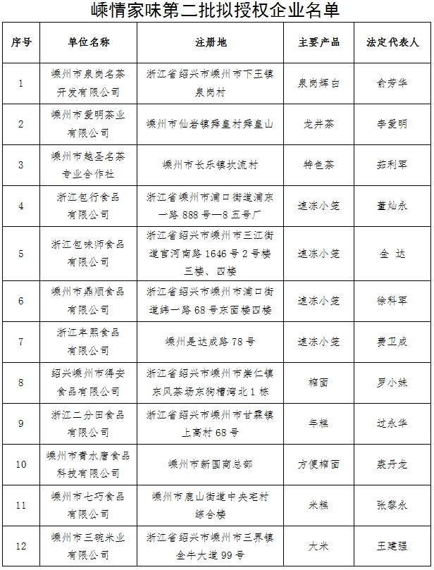 “嵊情家味”首批擬授權(quán)基地和第二批擬授權(quán)企業(yè)名單