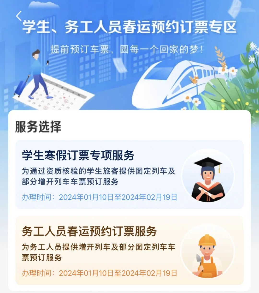 如果您是務(wù)工人員或者學(xué)生,春運(yùn)40天的票您現(xiàn)在都可以提前預(yù)約,但兌現(xiàn)需要提前16天。