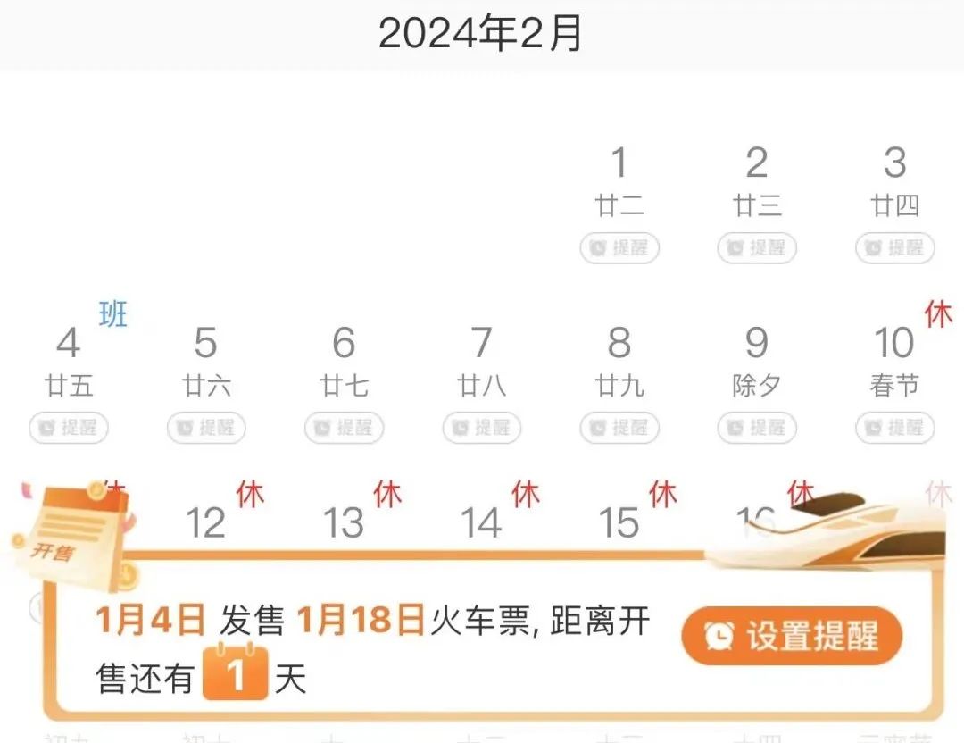 2024年春運(yùn)從1月26日開始,至3月5日結(jié)束,共40天。春運(yùn)車票已開始發(fā)售,最新購票日歷來了▼