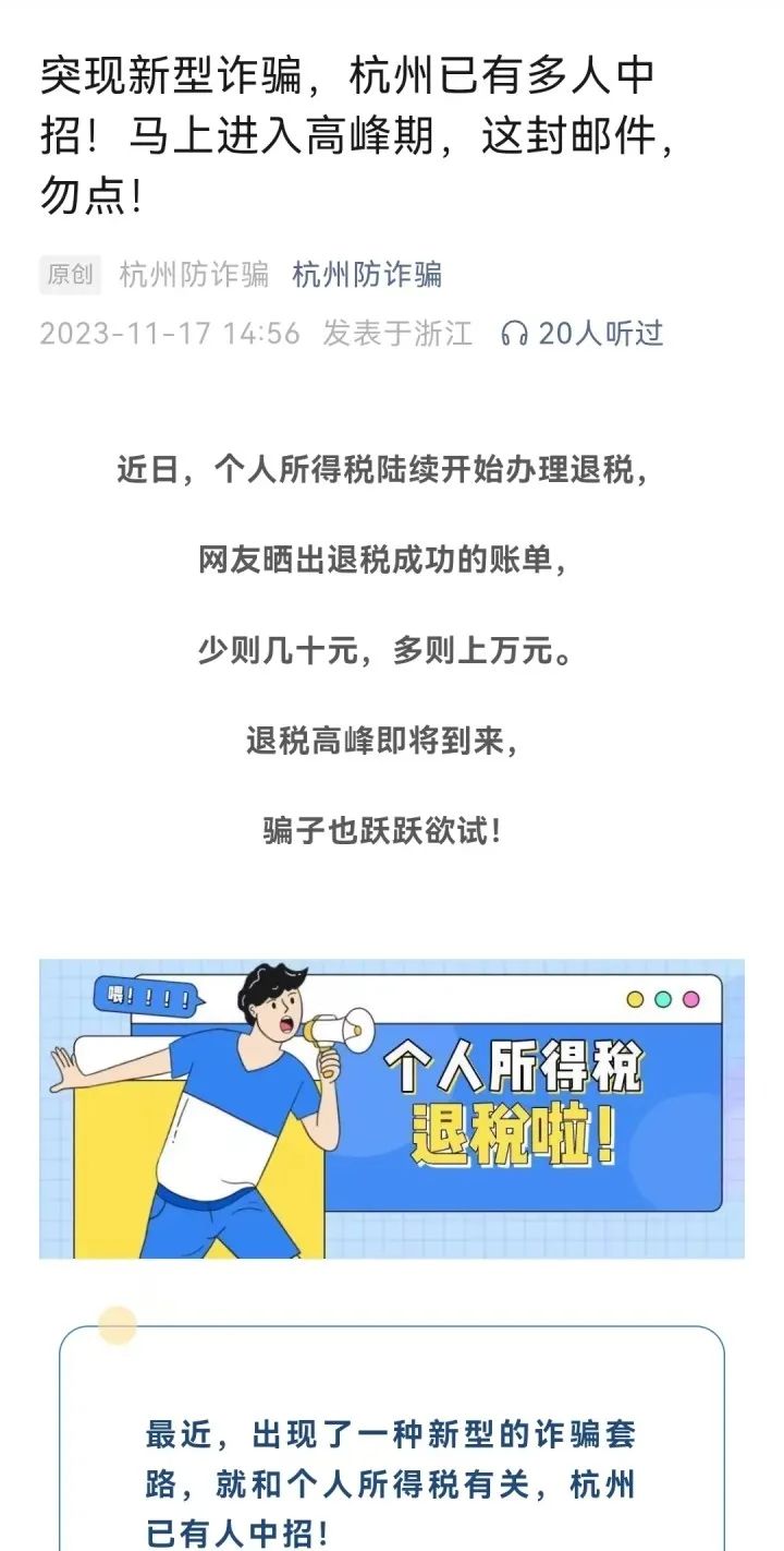 杭州反詐中心和杭州警方的公號,每每針對最新案例進行剖析,提醒公眾注意防范。