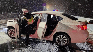紹興高速交警對(duì)積雪嚴(yán)重路段