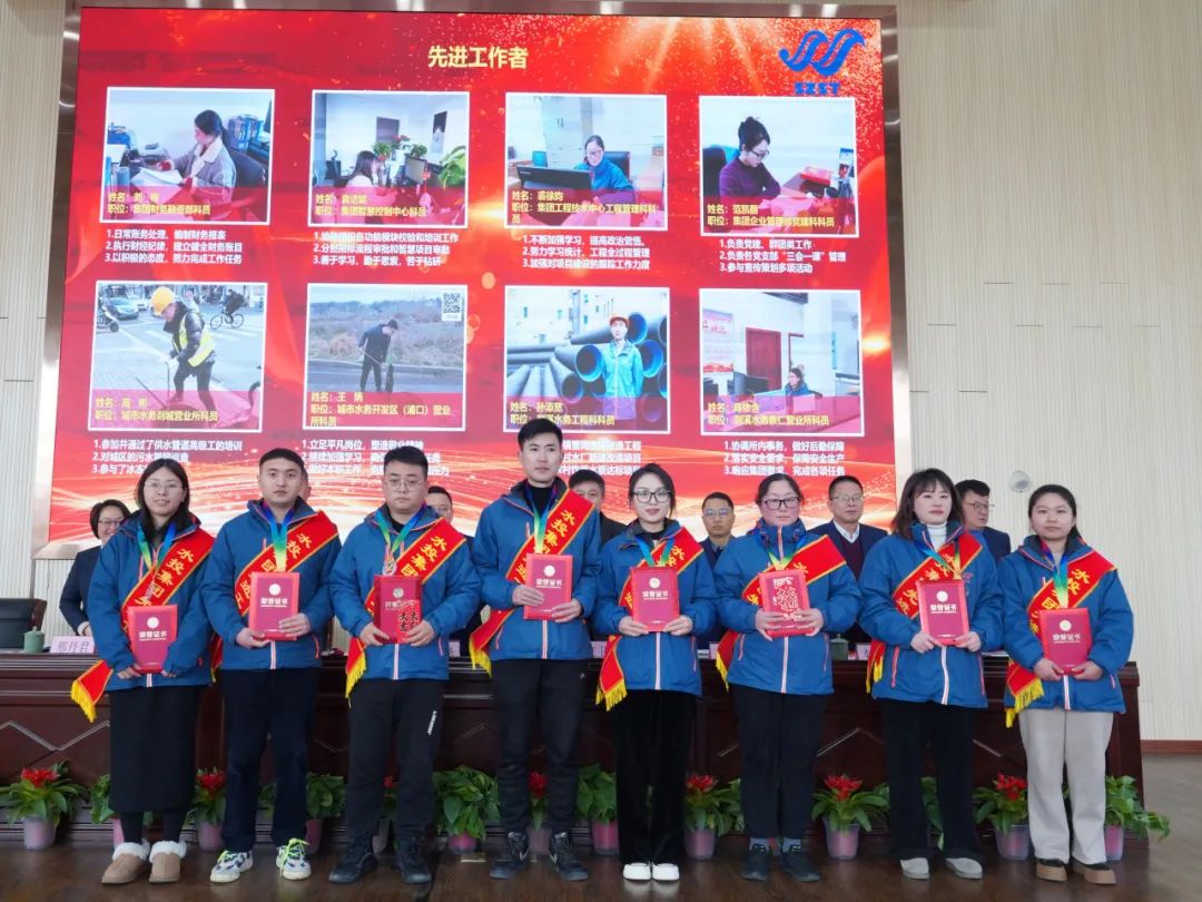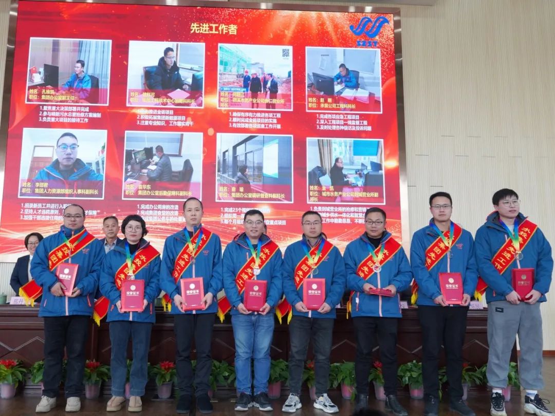 最后,集團(tuán)黨委書記、董事長周鋒在大會上作重要講話。周鋒董事長代表集團(tuán)黨委向獲得先進(jìn)的員工表示祝賀,向全體員工一年來的工作付出表示感謝!他簡要總結(jié)了去年集團(tuán)在“供水、污水、興利”三張圖及集團(tuán)黨建方面獲得的工作成果,指出所有成績的取得離不開市委市政府的堅(jiān)強(qiáng)領(lǐng)導(dǎo),離不開歷任黨委班子打下的扎實(shí)基礎(chǔ),離不開市級部門以及鄉(xiāng)鎮(zhèn)街道的大力支持配合和公司全體員工的不懈努力和辛勤付出。周鋒董事長強(qiáng)調(diào)在新一年工作中要繼續(xù)高舉習(xí)近平新時代中國特色社會主義思想偉大旗幟,堅(jiān)持市委市政府的領(lǐng)導(dǎo),集團(tuán)上下需牢牢把住開局大好時機(jī),迅速行動起來,早謀劃、早部署、早實(shí)施,以更加飽滿的精神狀態(tài)、更加高昂的熱情、更加務(wù)實(shí)的工作作風(fēng),全力推動水務(wù)事業(yè)現(xiàn)代化發(fā)展,為擦亮“富樂嵊州”金名片貢獻(xiàn)更多水投力量。