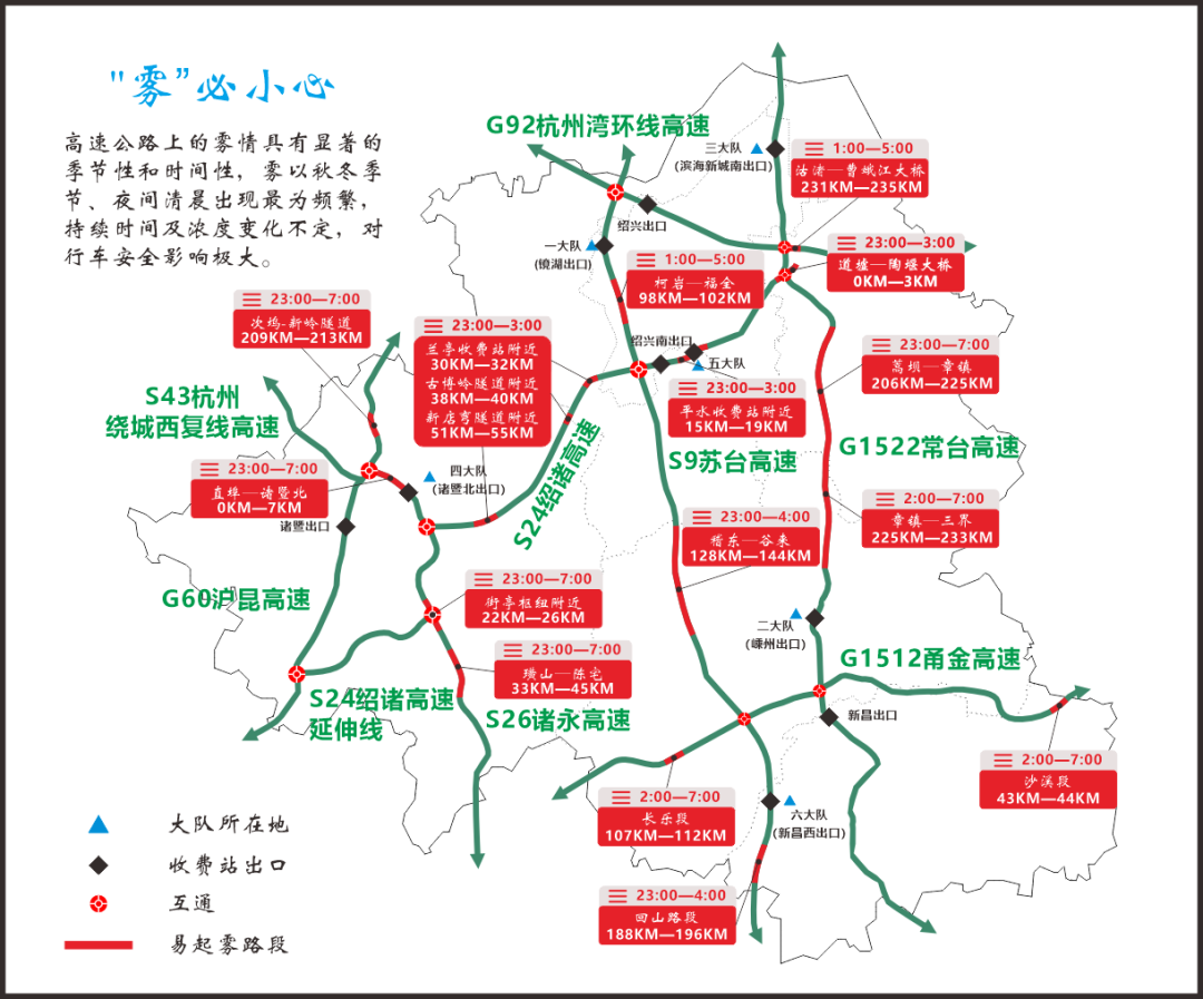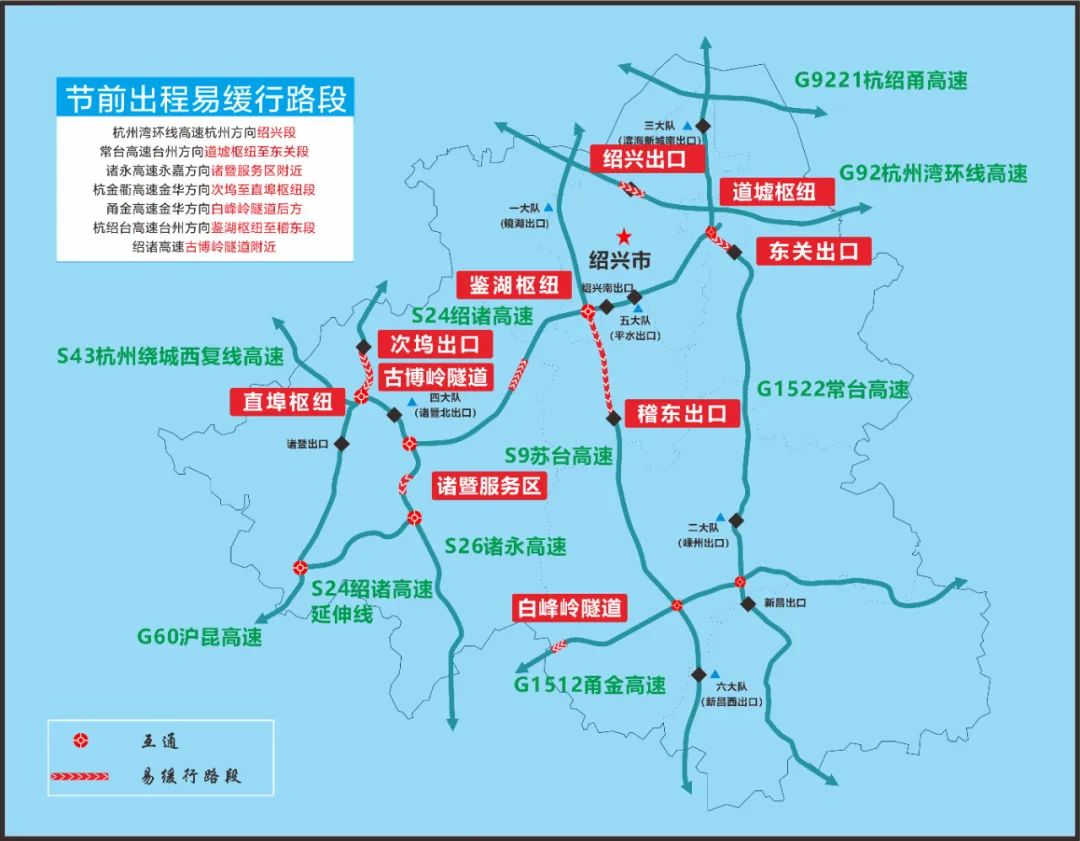 4、S26諸永高速諸暨服務(wù)區(qū)至后頭山隧道段發(fā)生緩行時(shí),提早從G60滬昆高速、S24紹諸高速延伸線繞行。