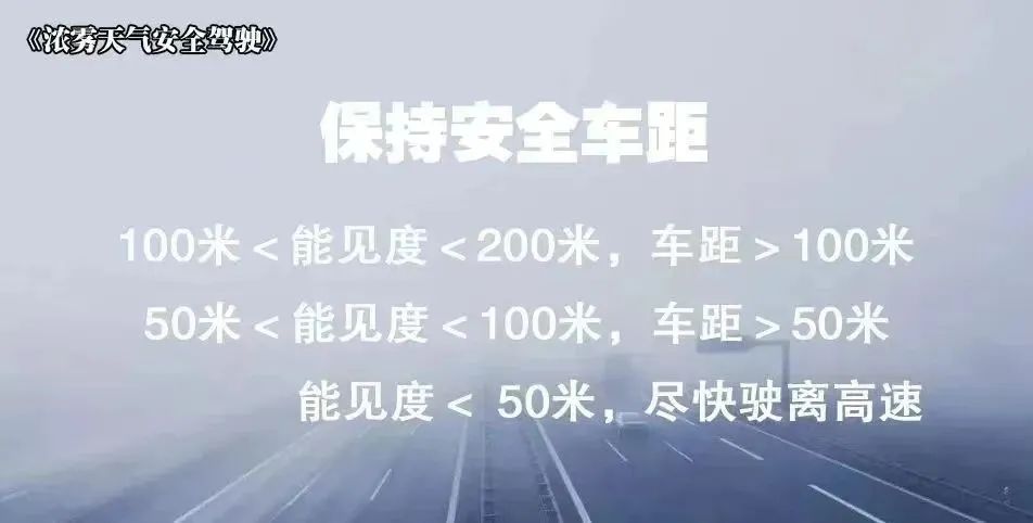 ①控制車速&車距:霧天能見(jiàn)度低,要想保障安全,就得確保在可見(jiàn)范圍內(nèi),隨時(shí)能處置前方的情況。這個(gè)時(shí)候最重要的就是限制車速和車距。特別注意:遇到團(tuán)霧,建議控制車速小于等于20km/h,在就近出口駛離高速、或駛?cè)刖徒?wù)區(qū)。