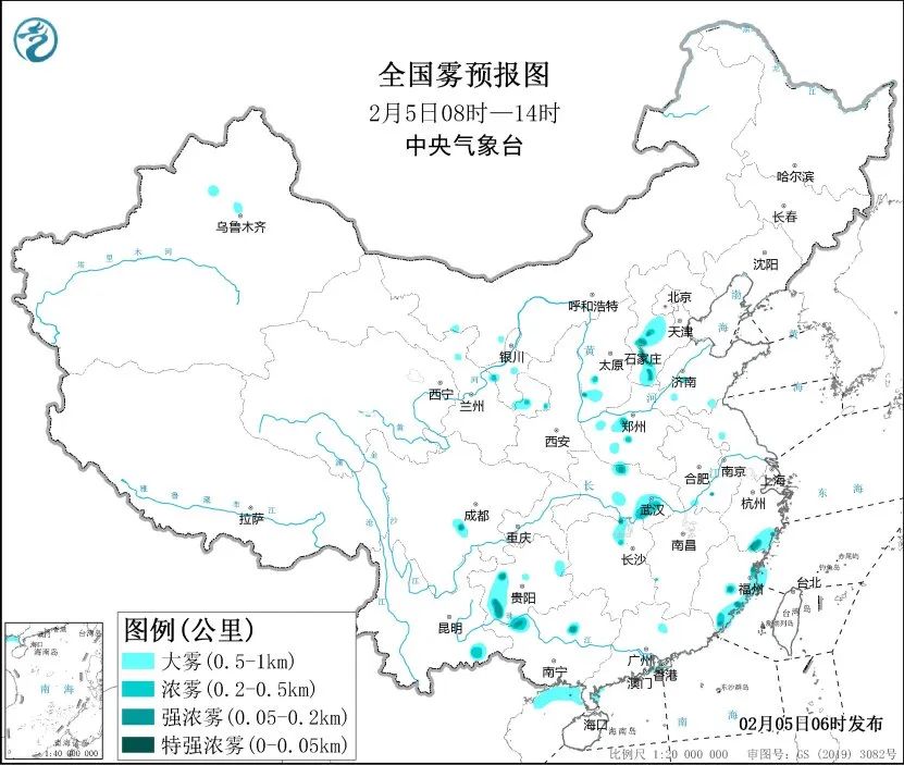 預(yù)計(jì)5日早晨起,河南南部、湖北中東部、浙江東南部、福建東部等地有大霧天氣,局地有能見度不足200米的強(qiáng)濃霧。