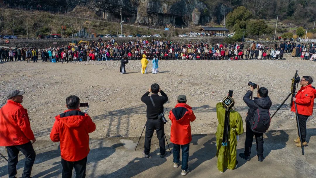 2月10日是農(nóng)歷龍年正月初一,下王鎮(zhèn)石溪村石舍自然村的河灘上,任姓家族八代800余人,相約一起拍攝全家福。