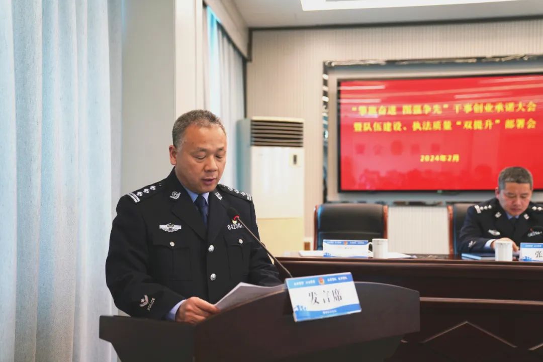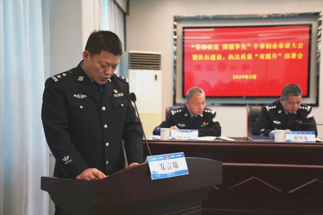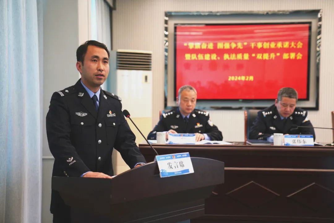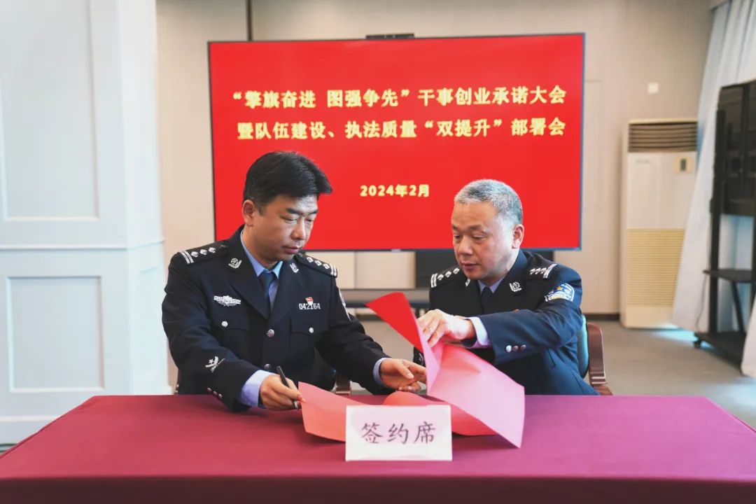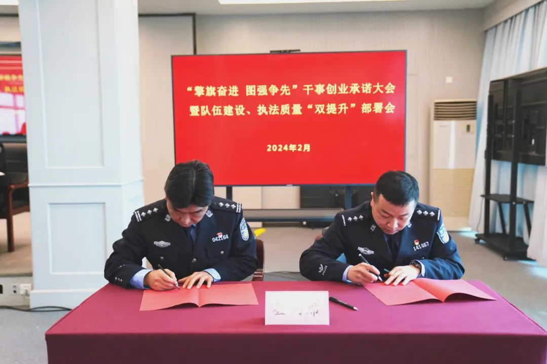 會(huì)上,通報(bào)了2023年度各機(jī)關(guān)單位干事創(chuàng)業(yè)履諾情況及2024年各警種排位指標(biāo)計(jì)劃,部署了隊(duì)伍建設(shè)、執(zhí)法質(zhì)量“提升年”重點(diǎn)工作。交警大隊(duì)、治安管理中心、經(jīng)偵大隊(duì)、巡特警大隊(duì)、浦口所、甘霖所、長樂所等7個(gè)單位主要負(fù)責(zé)人進(jìn)行了交流表態(tài)發(fā)言,并簽訂干事創(chuàng)業(yè)承諾責(zé)任狀。