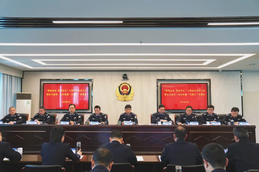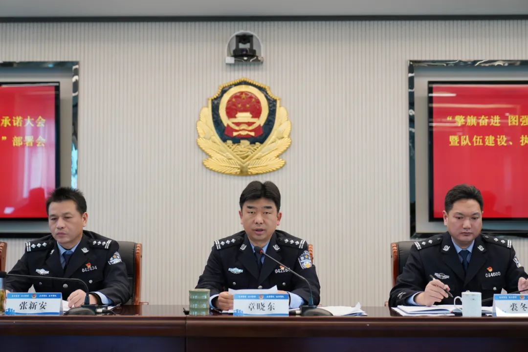人勤春來早,奮進(jìn)正當(dāng)時(shí)。2月18日農(nóng)歷新年上班第一天,嵊州公安召開了“擎旗奮進(jìn) 圖強(qiáng)爭(zhēng)先”干事創(chuàng)業(yè)承諾大會(huì)暨隊(duì)伍建設(shè)、執(zhí)法質(zhì)量“雙提升”部署會(huì)。副市長、公安局長章曉東出席會(huì)議并講話,局黨委副書記、政委裘冬曉主持會(huì)議,全體局領(lǐng)導(dǎo)出席會(huì)議。
