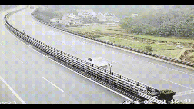 有輛小車撞上護欄