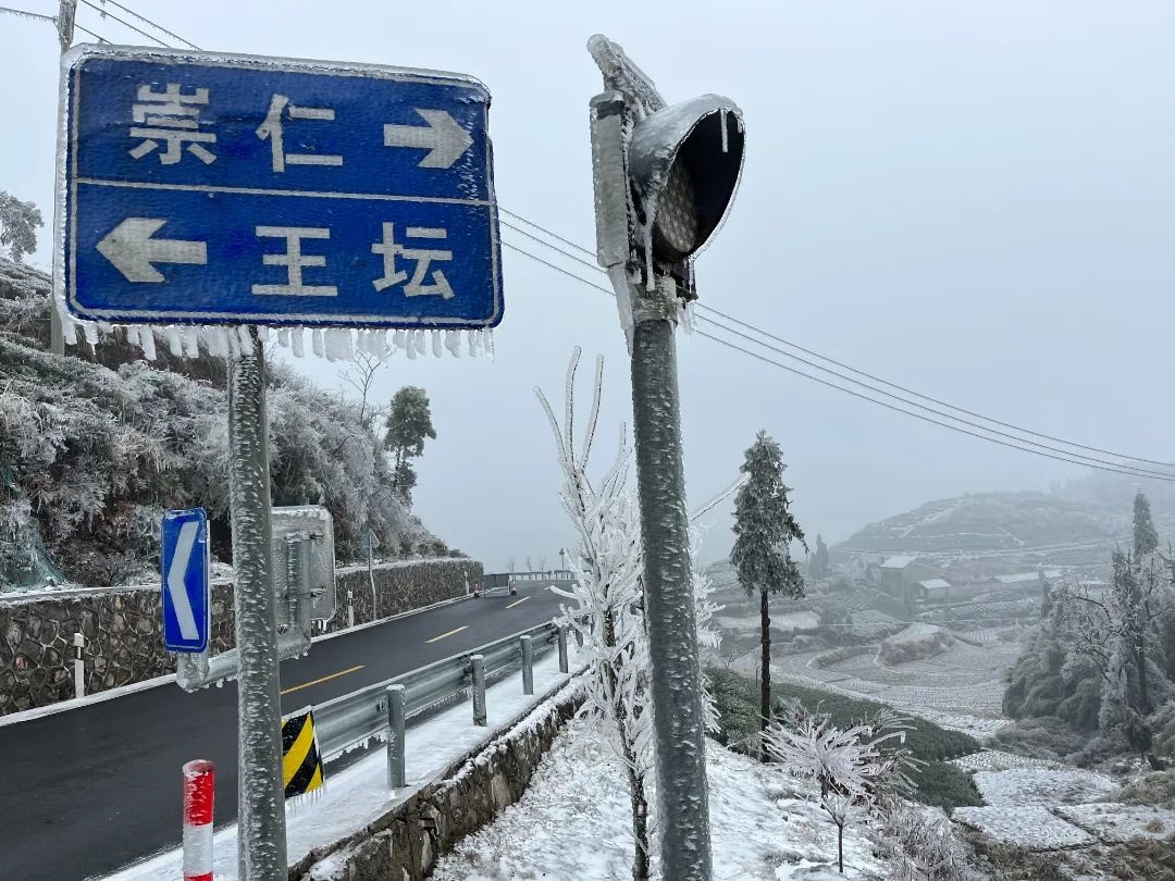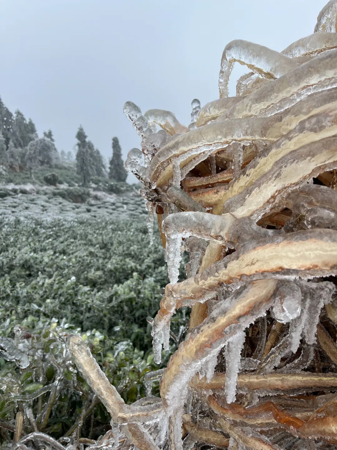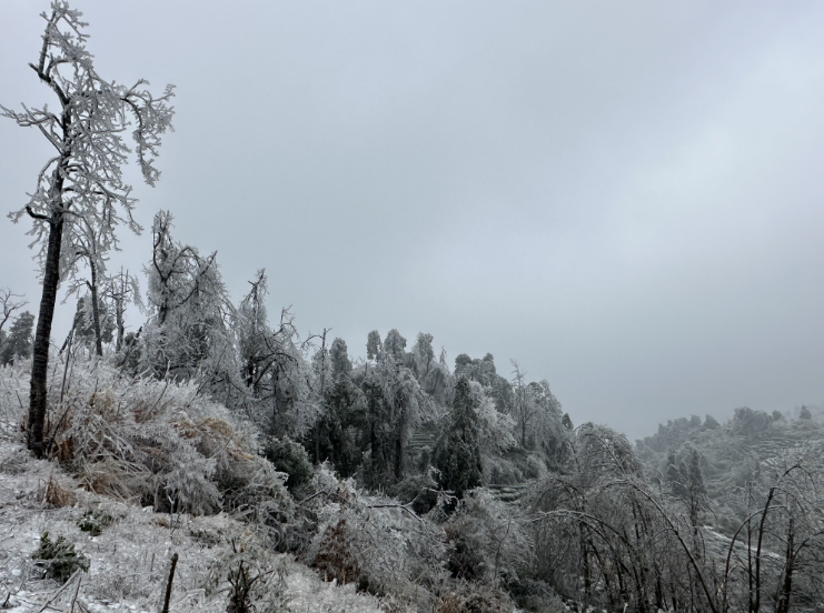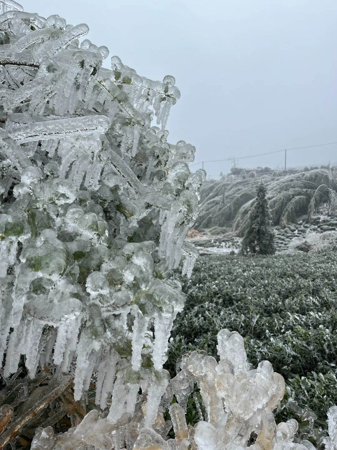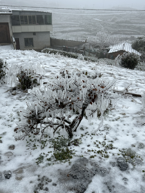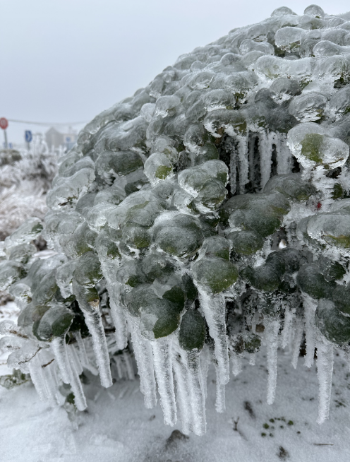 連日的低溫天氣,嵊州多地飄雪,山區(qū)出現(xiàn)大規(guī)模的霧凇景觀。