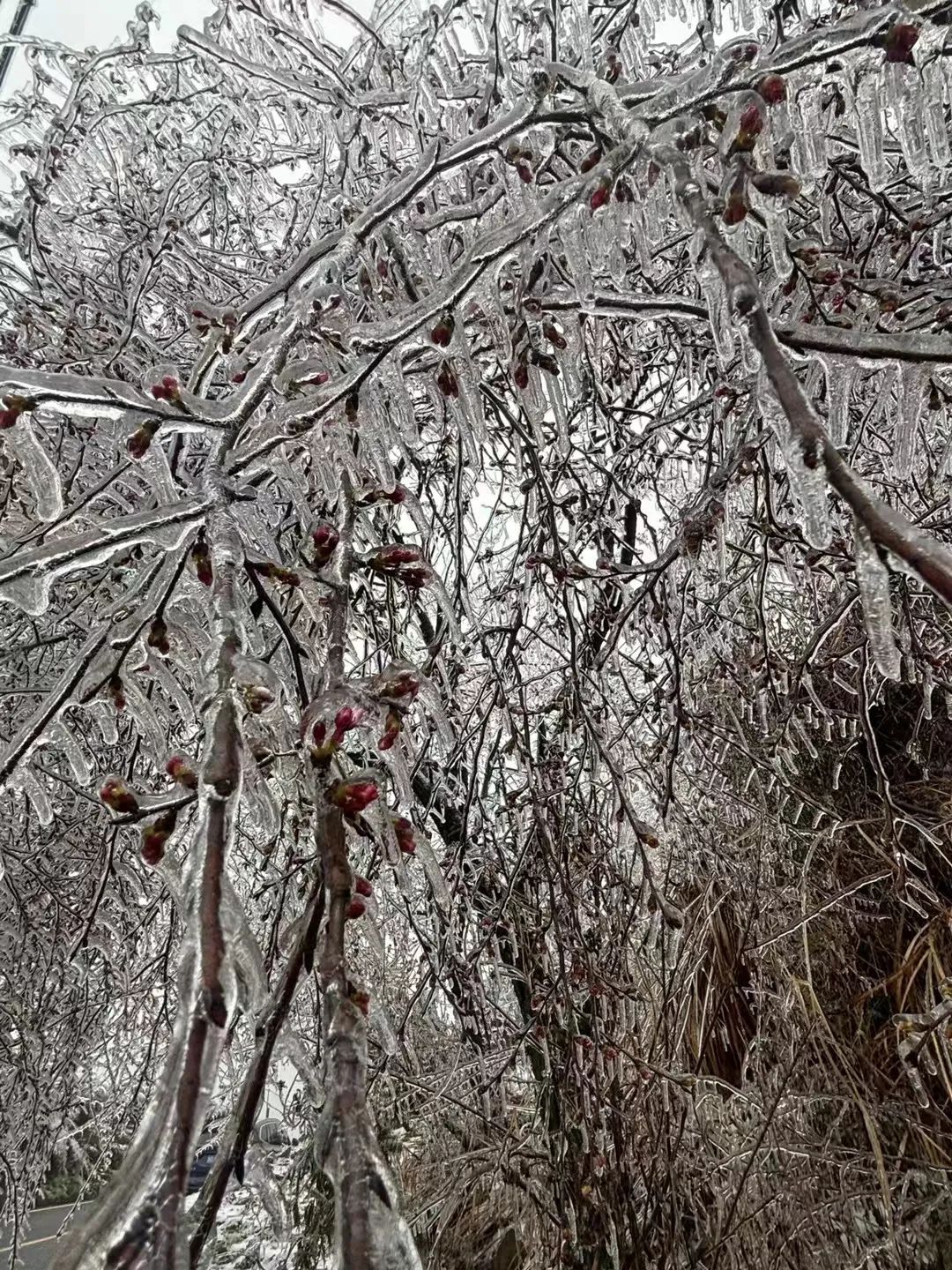 網(wǎng)友在嵊州谷來(lái)鎮(zhèn)王院村及崇仁鎮(zhèn)嶺頭山看到 沿途每一棵樹木,每一個(gè)枝條,都被晶瑩剔透的冰凌包裹得嚴(yán)嚴(yán)實(shí)實(shí),仿佛置身童話世界,讓人流連往返宛如步入了一個(gè)美麗的童話世界。