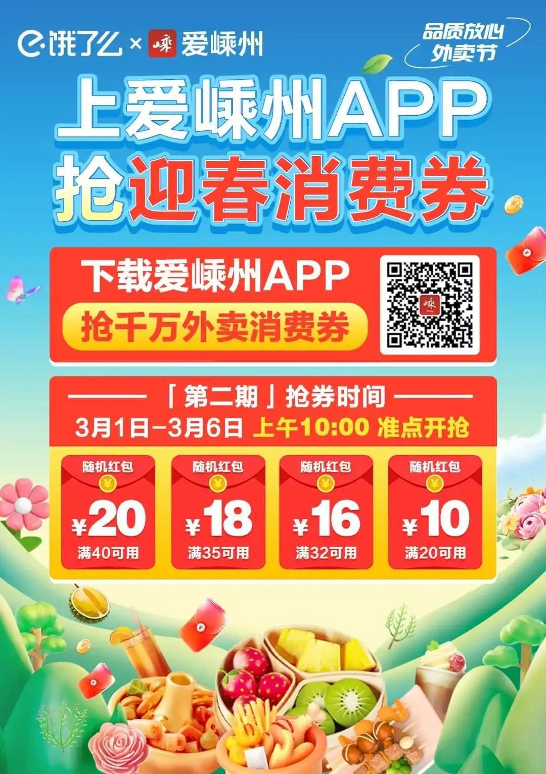 愛嵊州餓了么外賣消費券第二趴再次來襲,3月1日至6日,餓了么大額滿減消費券,繼續(xù)放送!