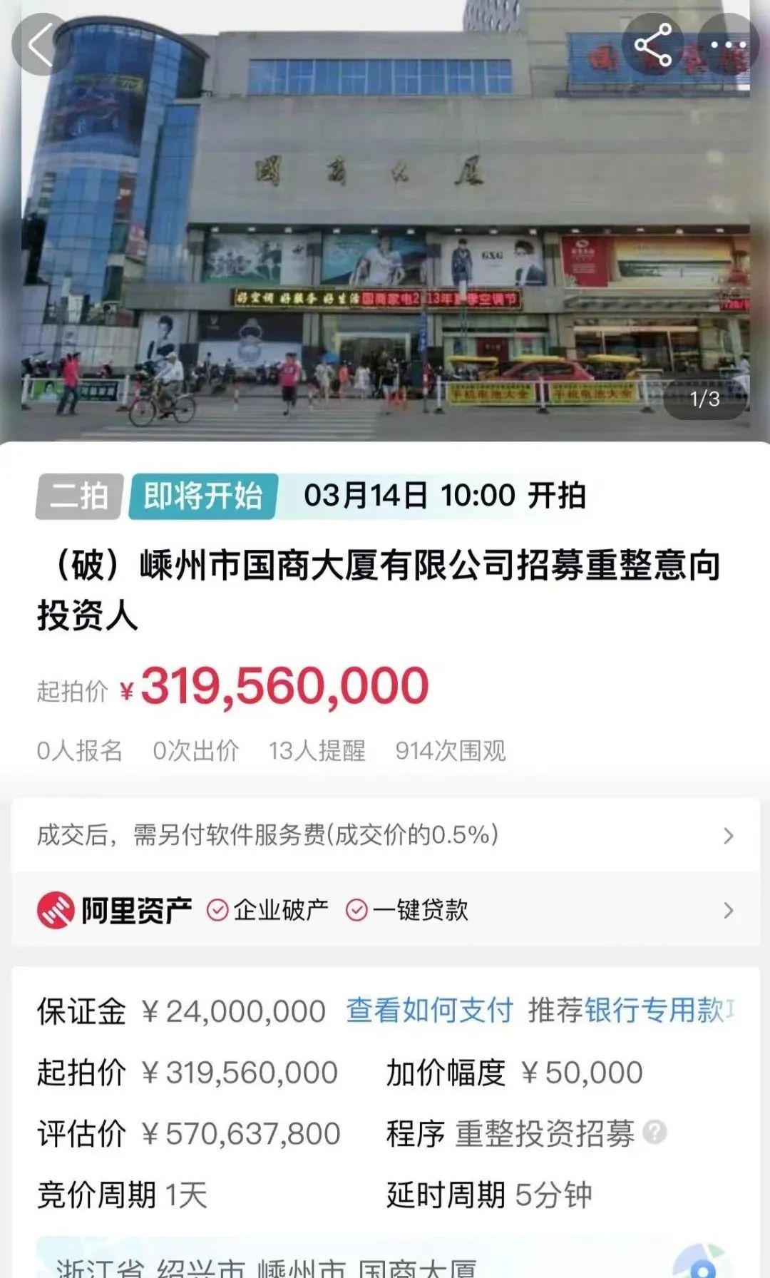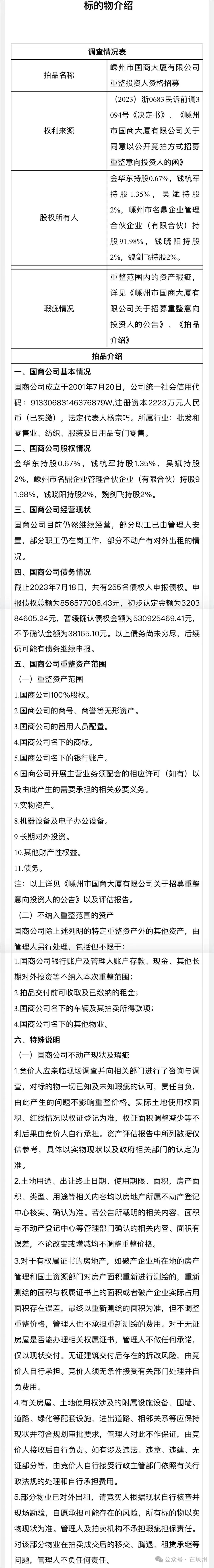 記者注意到,《嵊州市國(guó)商大廈有限公司關(guān)于招募重整意向投資人的公告》顯示: