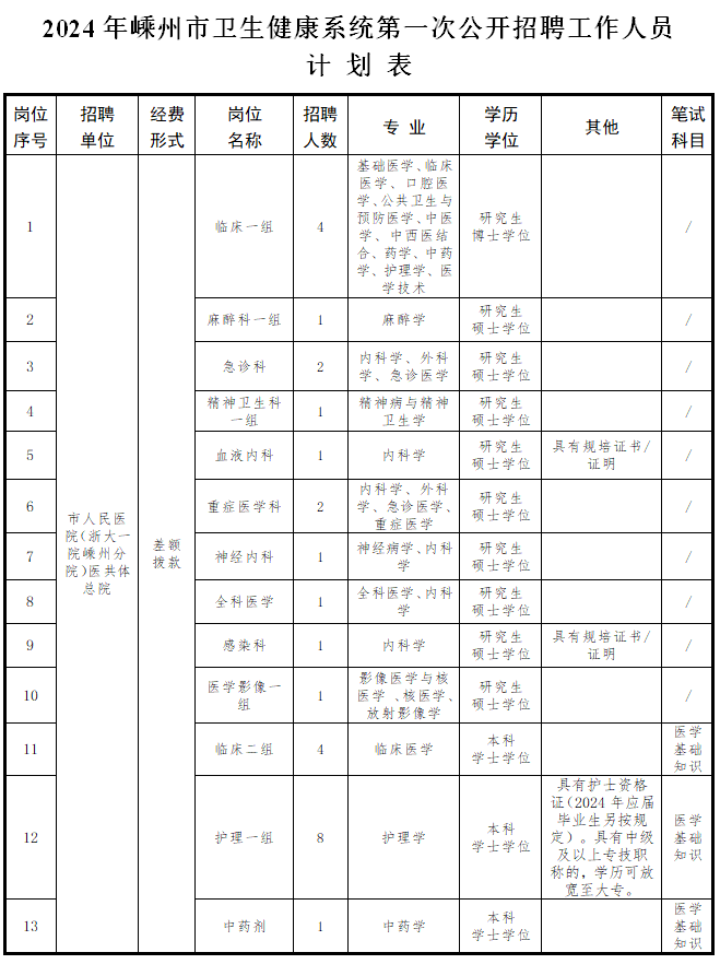 6.嵊州市衛(wèi)生健康局下屬事業(yè)單位擬聘用人員或在編人員;