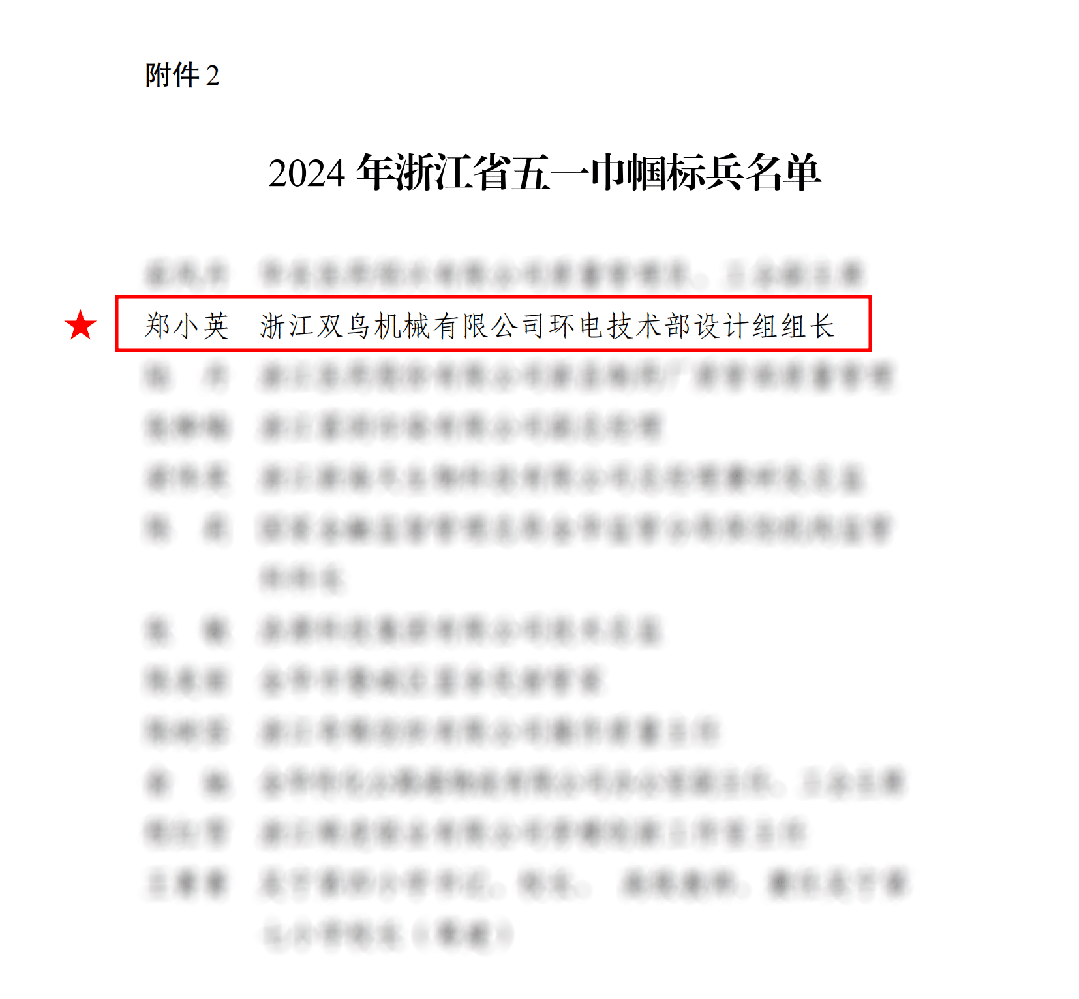 浙江雙鳥機械有限公司環(huán)電技術(shù)部設(shè)計組組長鄭小英榜上有名