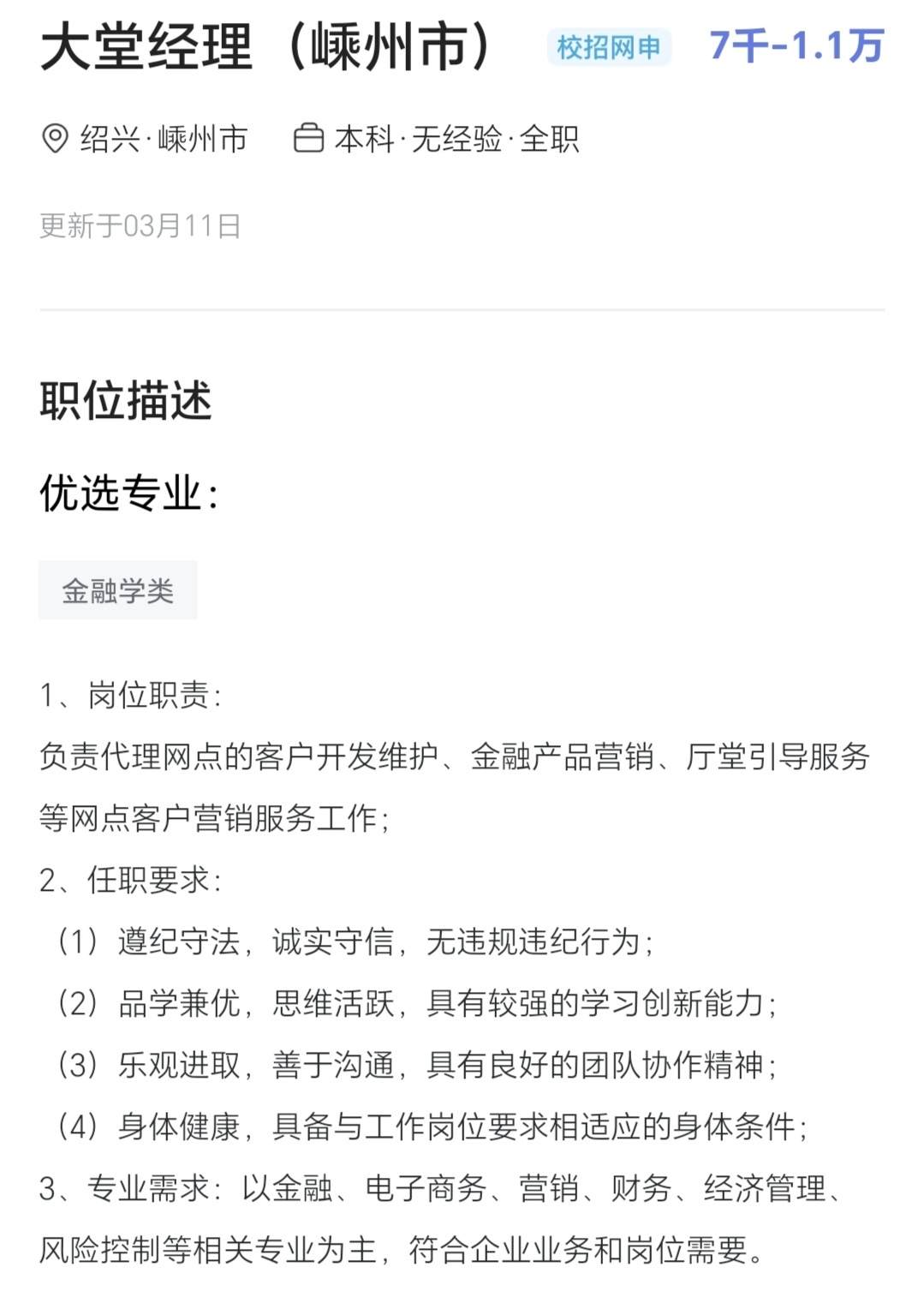 中國(guó)郵政儲(chǔ)蓄銀行浙江省分行2024年招聘啟動(dòng)
