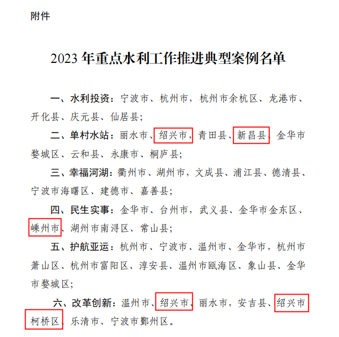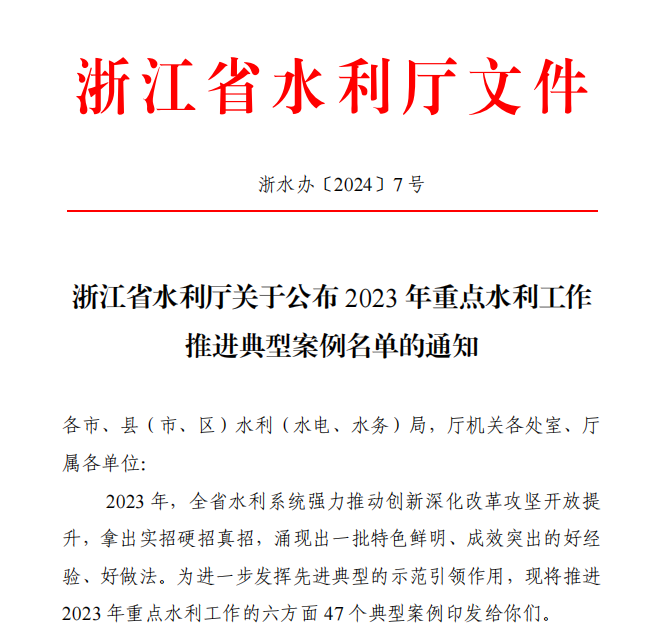 近日,浙江省水利廳公布2023年重點水利工作推進典型案例名單,