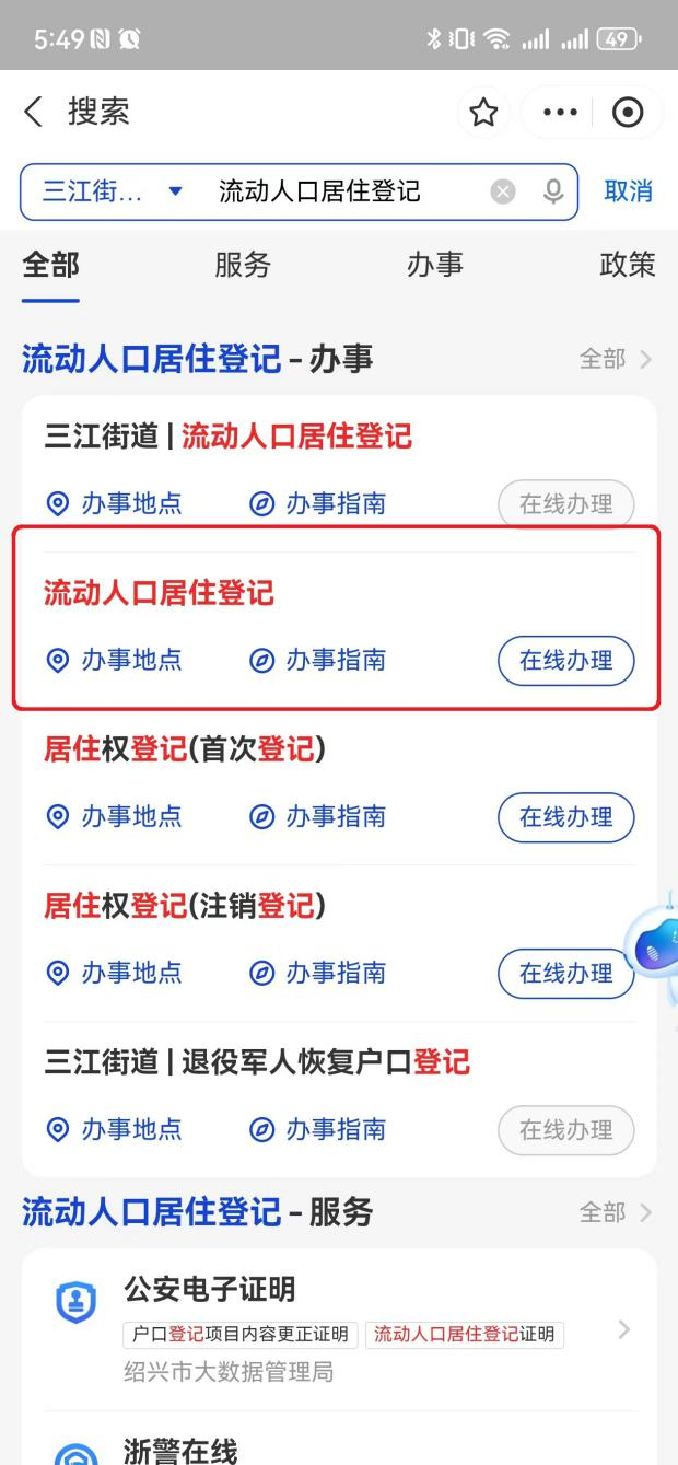 浙里辦app搜索“流動(dòng)人口居住登記”,點(diǎn)擊“在線辦理”。