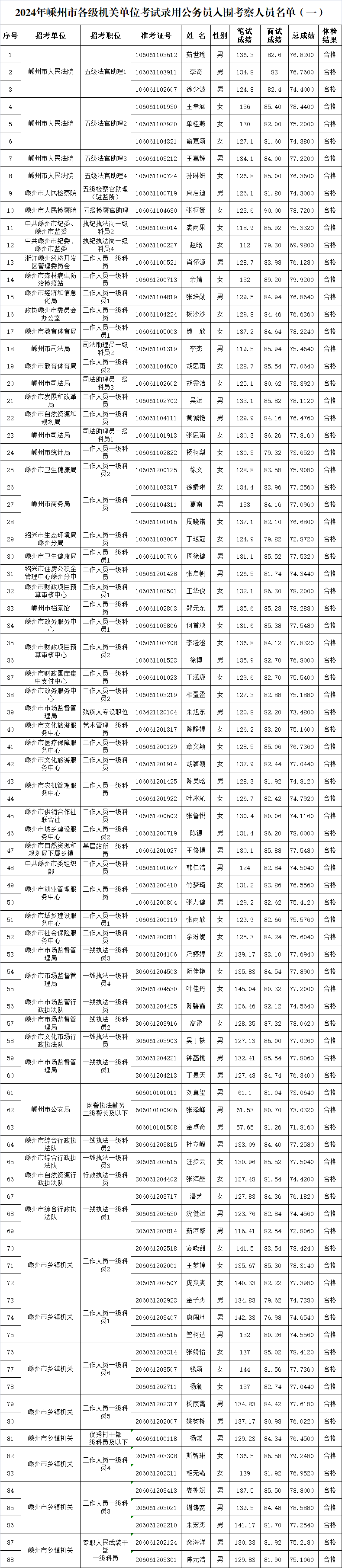 近日,嵊州市人民政府網(wǎng)站對2024年嵊州市各級機關(guān)單位考試錄用公務(wù)員入圍考察人員的崗位、成績、體檢結(jié)果等進行了公示。